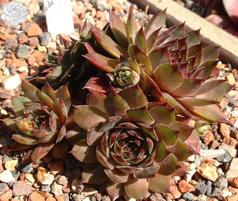 offene Rosetten bis 8 cm , im Innern oliv braun , Blattspitzen kastanienbraun, Blattränder bewimpert, wächst langsam, ein Elternteil cv. Monases, benannt vom Enkelkind des Züchters , Lisa Schwaldt