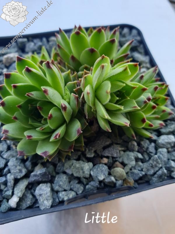 Sempervivum 'Little' ist ein kleiner sehr kompakt wachsender Sempervivum calcareum Typ, den ich ohne Bezeichnung erhalten habe. Ich habe ihm den Arbeitsnamen 'Little' gegeben und so wurde er bekannt und in den Sammlungen verteilt. Seine genaue Bezeichnung wurde mittlerweile herausgefunden. Es handelt sich um Sempervivum calcareum von Céüse (Frankreich) Typ nanus. Alle S. calcareum-Formen haben eine ganz besondere Ausstrahlung und diese kleine Form ist wirklich einzigartig!
