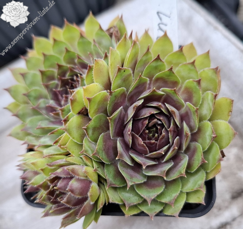 Ein mittelgroßer Sämling von 'Red Cross'. Im Frühjahr haben die Blätter einen rot-metallischen Glanz und grüne Spitzen. Die Farbe wechselt zum Sommer hin in schöne Pastelltöne. Die Pflanze ist sehr stabil in großer Hitze.