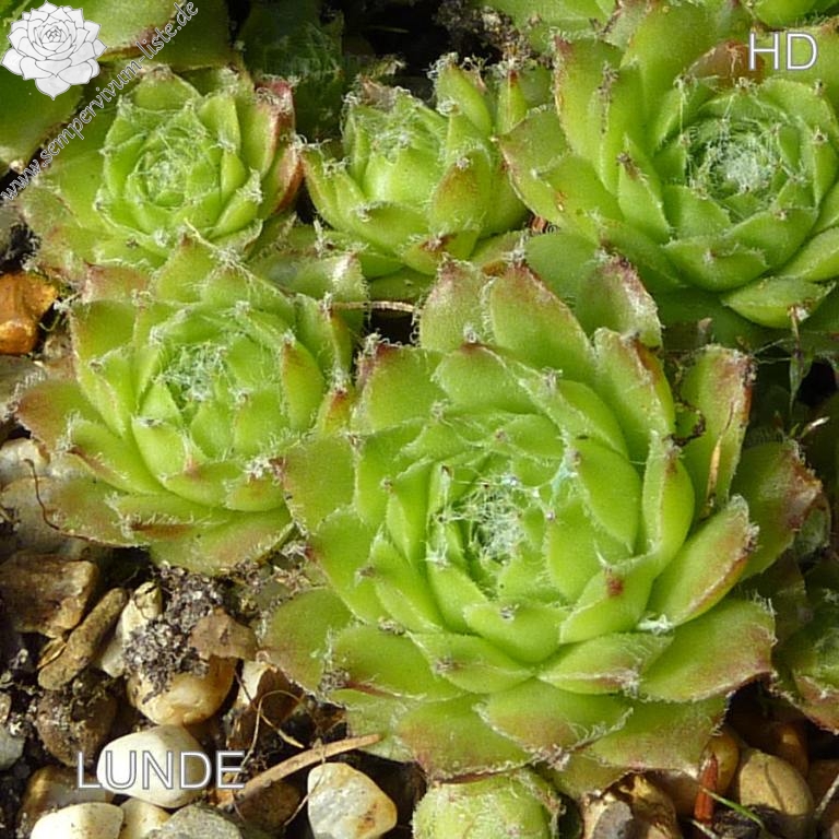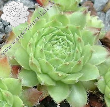 Mittelgroße, frischgrüne Rosetten, mit kleinen, dunkelroten Spitzen. Die Blattspitzen zeigen eine leichte, weiße Bewollung. Eine wüchsige Sorte, die willig sprosst!