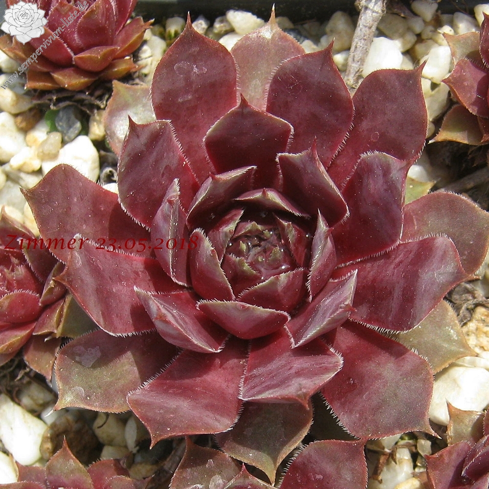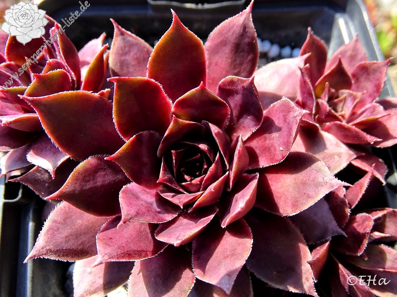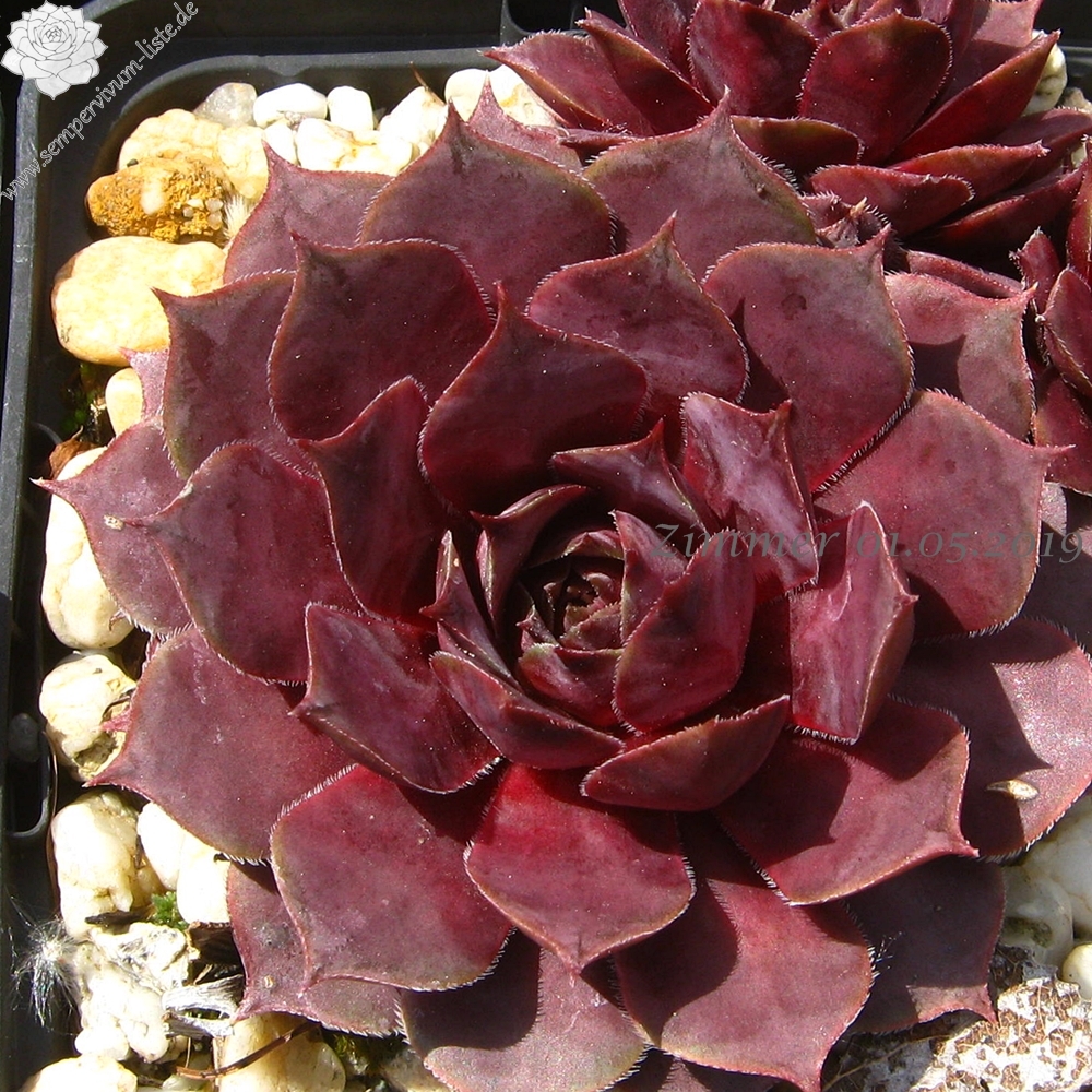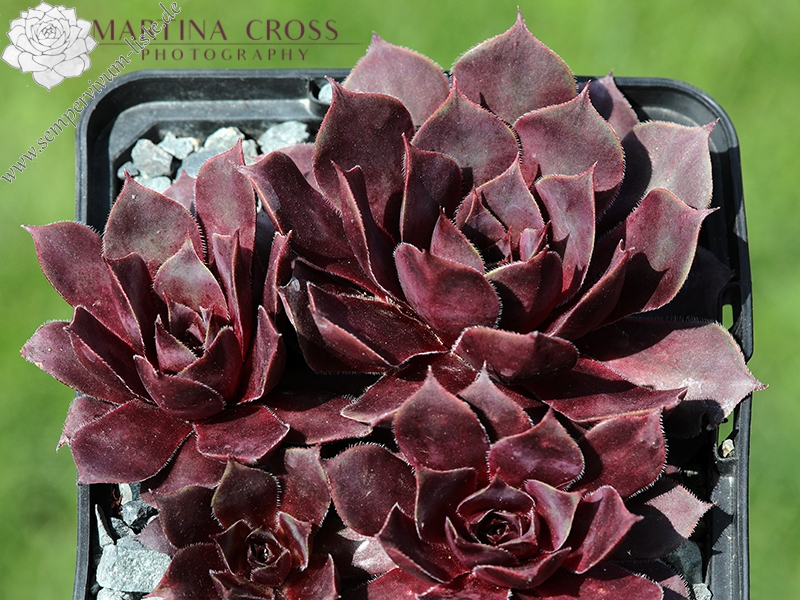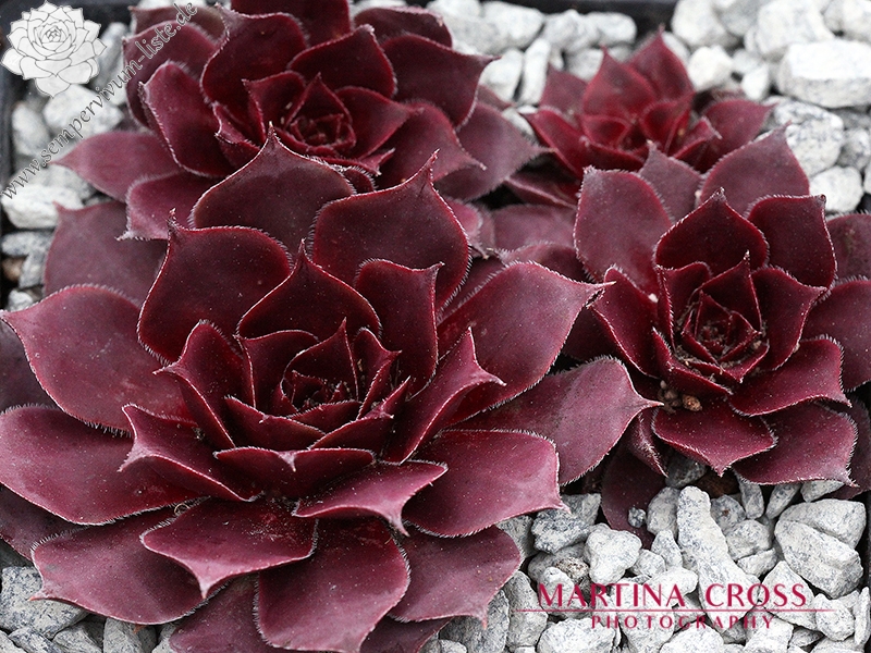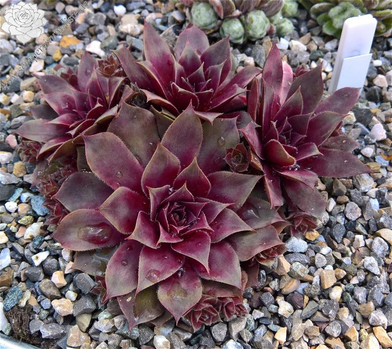 Sempervivum 'Manhattan' zeigt kräftige Farben, besitzt jedoch eine auffallend kühle Gesamtwirkung. Die Farben sind sehr harmonisch und lassen sich gut in jede Pflanzung einbringen. Im Frühjahr sind die Rosetten anfangs sehr kühl, lila gefärbt und sobald die Temperaturen steigen, schmückt sich das Zentrum mit leuchtend purpurnen Farben, die sich dann unregelmäßig über die ganze Pflanze verteilen. Im Sommer werden die Blattenden immer heller und das Zentrum färbt sich kräftig Lila und erhält eine sehr dunkle Wirkung. Die Rosetten besitzen eine sehr flache, offene Wirkung und erreichen einen Durchmesser von etwa 10 cm. Sie sind unempfindlich und kommen auch mit sehr heißen, trockenen Sommer gut zurecht, ohne dass die Farben leiden. Es handelt sich um eine wüchsige Pflanze, die schnell dichte Polster bilden kann. Die Blüten erscheinen nur selten und sitzen ganz dicht zusammen auf kleinen Blütenbällen. Die Blütenblätter sind sehr schmal, mit hellen Rändern. Eine robuste Pflanze die mir sofort gefallen hat!