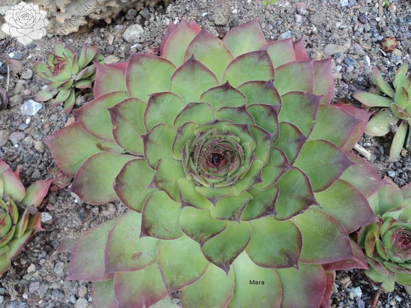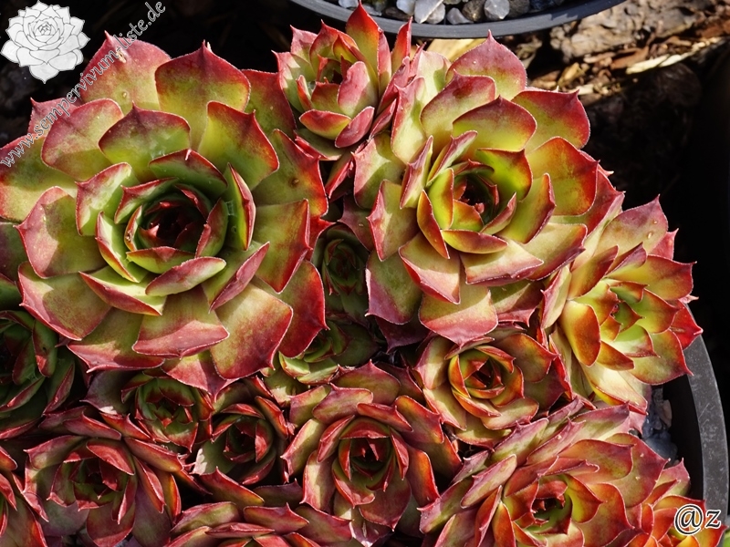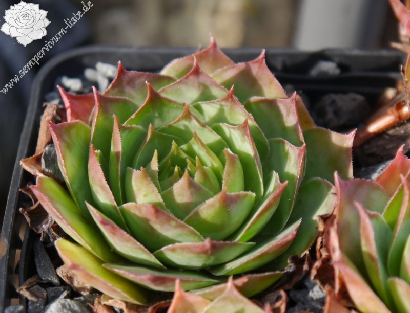 Rosetten 4-7 cm, breit, dunkelblaugrün mit rosa Spitzen