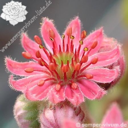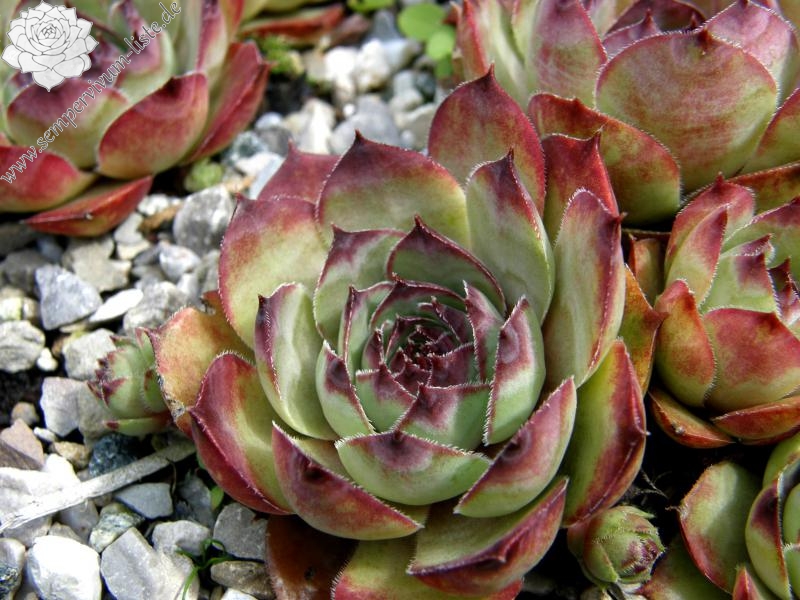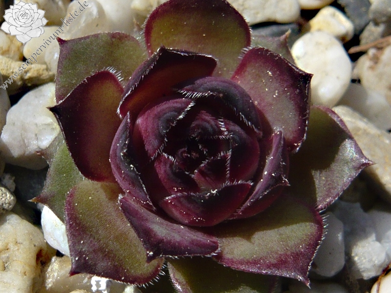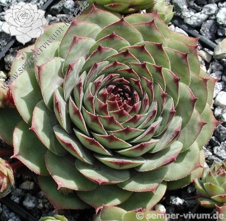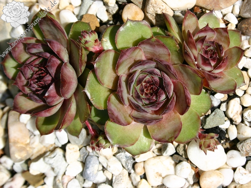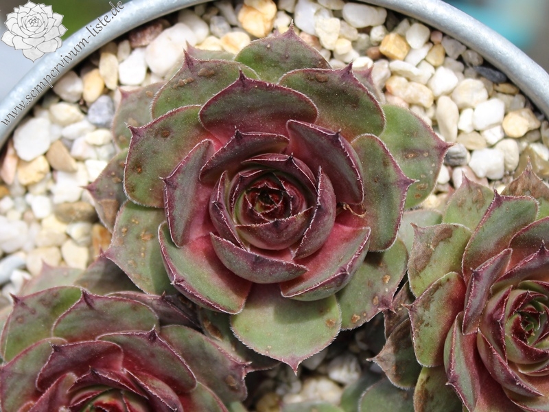 Diesen Sämling benannten wir zu Ehren einer Sempervivum-Sammlerin aus Oregon. 'Marea' formt mittelgroße, flache Rosetten in hechtgrauer Färbung. Die Blätter sind auffallend breit und ab der Mitte bis zu den Spitzen mit violett bemaltem Rand. Die Tochterrosetten sitzen an rötlichen Stolonen.