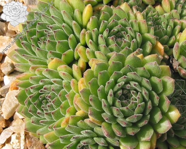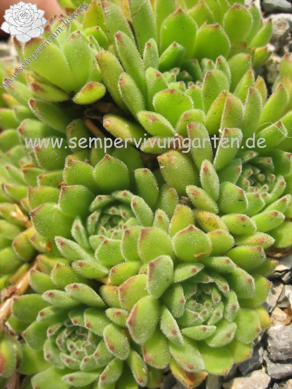 Eine mittelgroße Sorte, die wüchsig ist und gute Polster bildet! Hellgrüne, flaumige Rosetten!