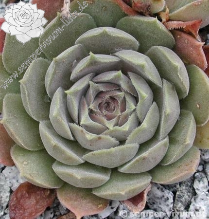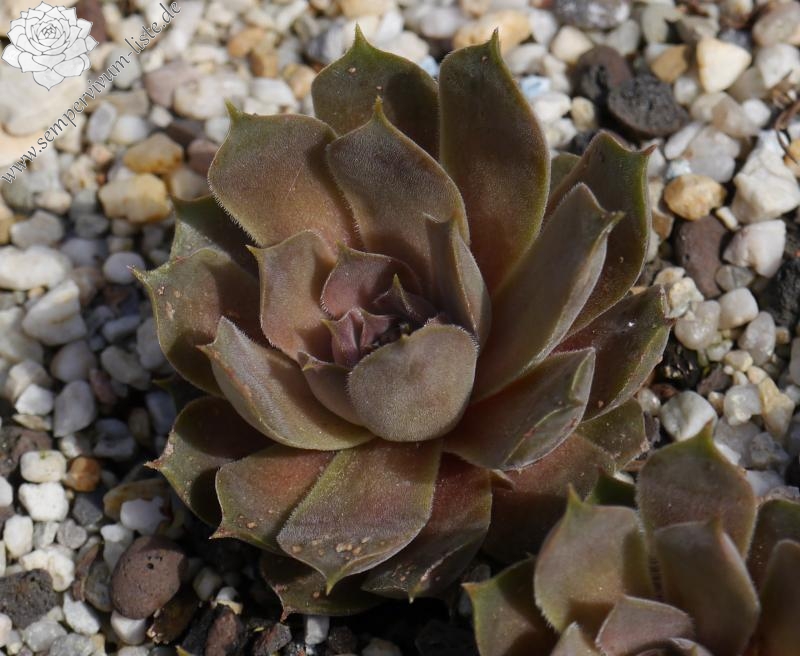Erwin Geiger: Die Botaniker sind sich noch uneins und diese Pflanze wird oft als Hybride unbekannter Eltern angesehen. Auffallend ist das Herz der Rosetten, in der die Blätter abrupt nach hinten gebogen sind. Eigentümliche graurosa bis olivgrüne Färbung; eher langsam wachsend.