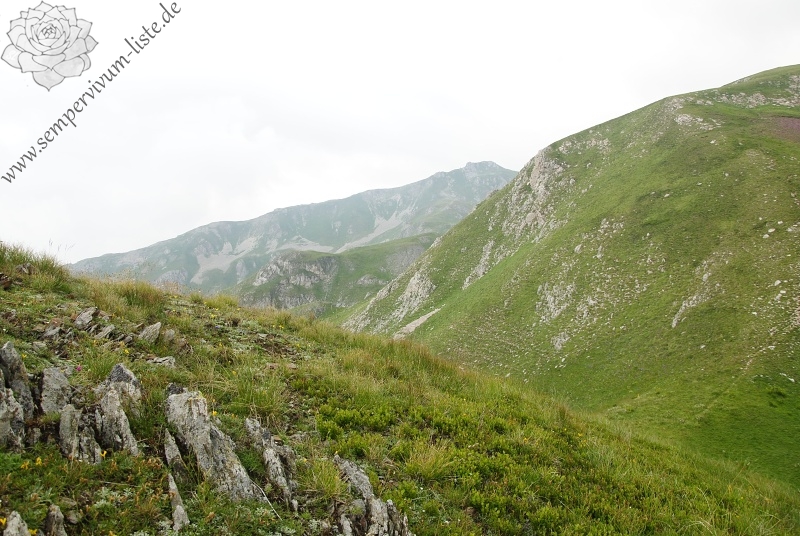 Lokalität: Gebirgskamm Guri i Delpnis über dem Tal des Flußes Radika am Berg Korab, dort vor allem in den Lücken zwischen den Steinen, in der Nähe der Steine und auch teilweise im Gras
