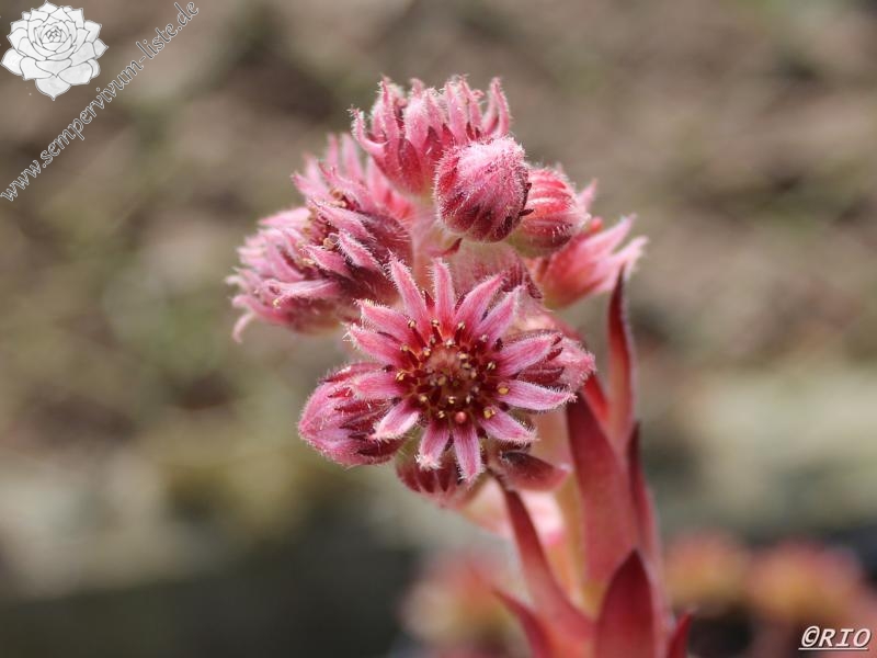 Eine belgische Hybride mit mittelgroßen bis größeren Rosetten mit verschiedenen ocker- und rosafarbenen Schattierungen getönt.