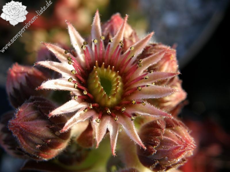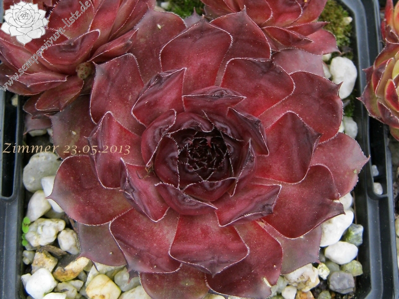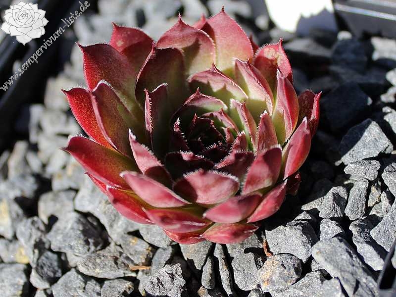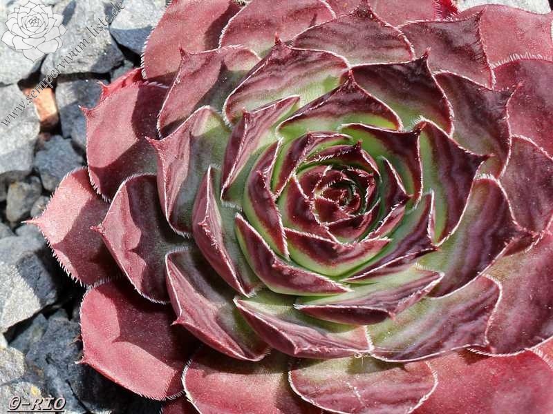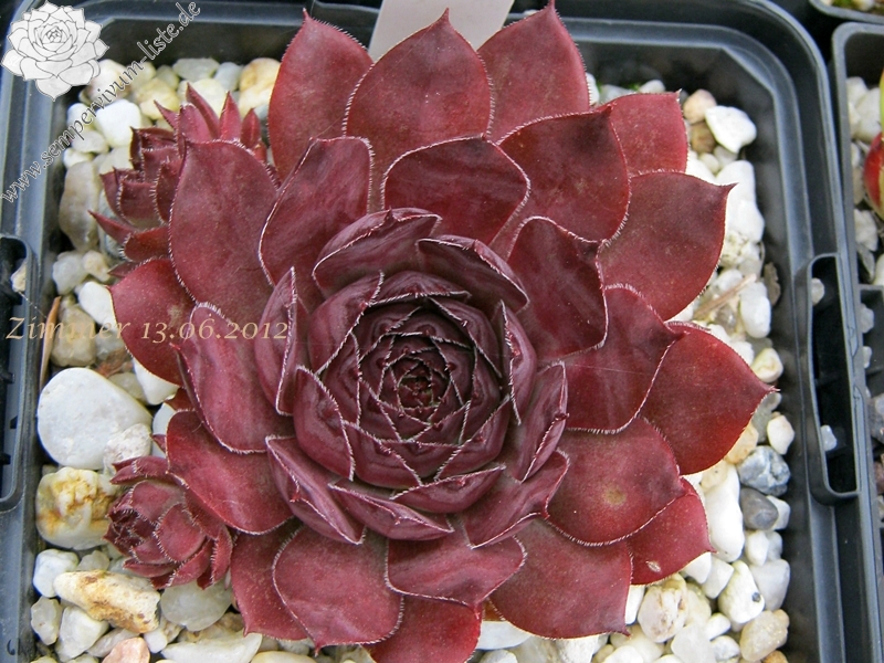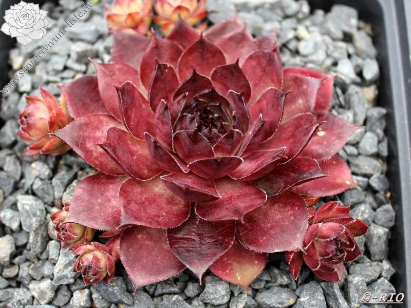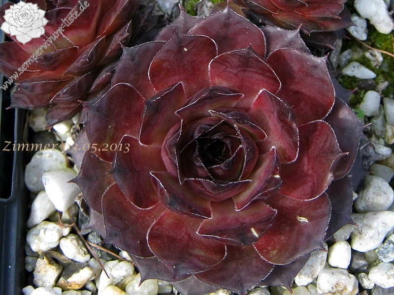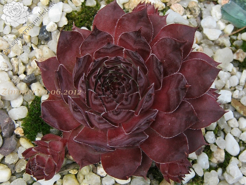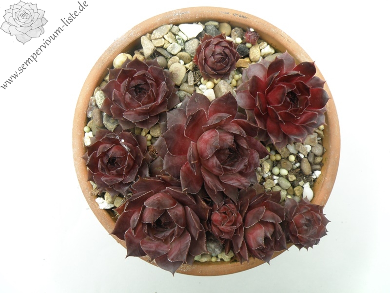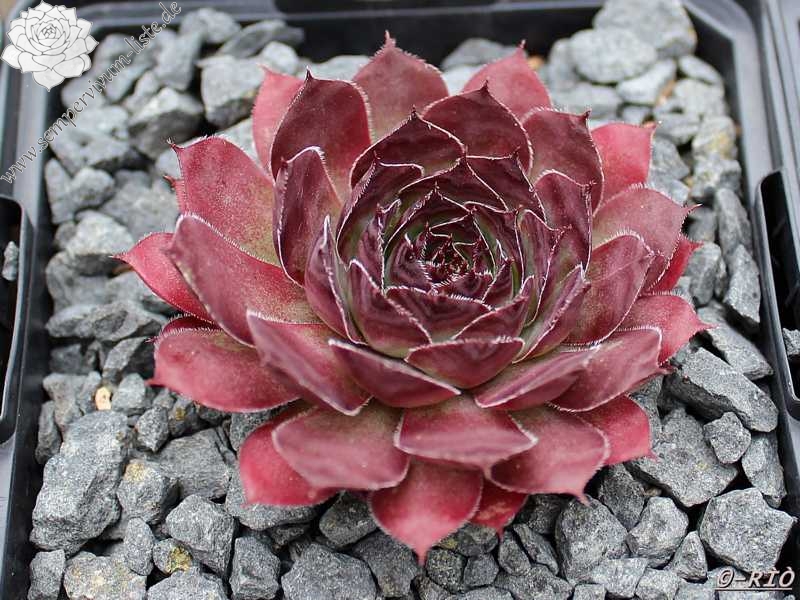 Ros. 5 cm, breit, braunrot, blaugrün gefleckt, im Winter schwarzrot