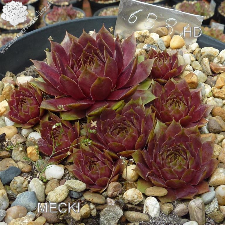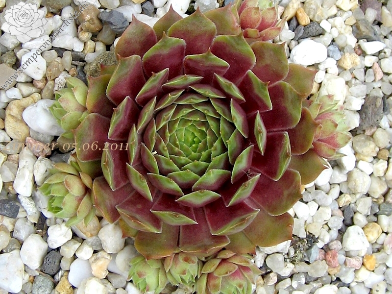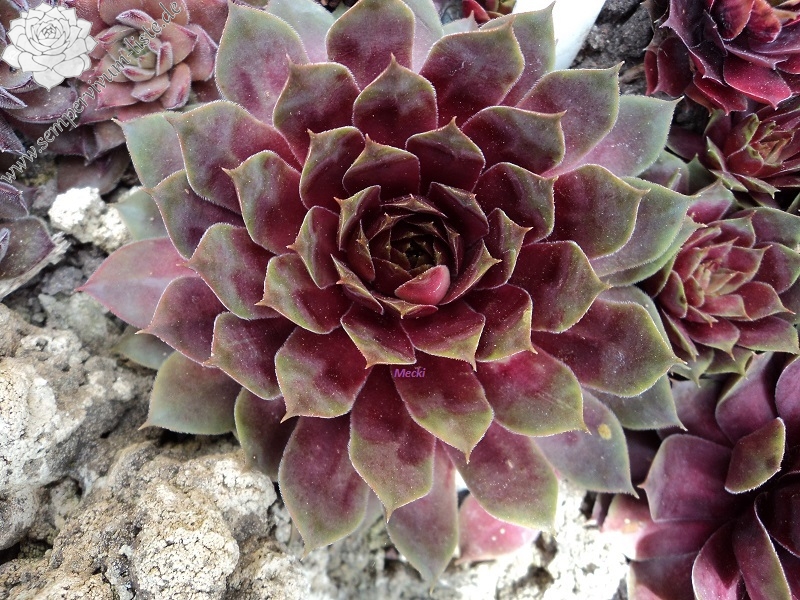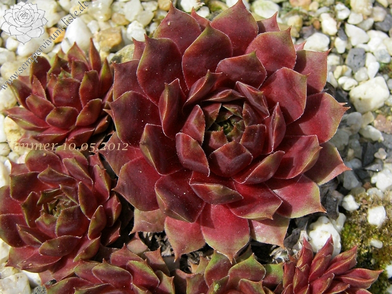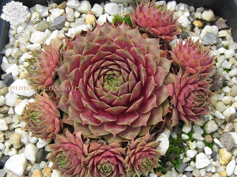 Es ist ein Kind der 70er Jahre von mittlerer Größe. Die Blätter sind eher kurz, was den Rosetten eine tolle Form beschert. Eine Farbmischung aus Weinrot und dunklem Rosa schmückt die Sorte bei einem vollsonnigen Standort bis spät in den Sommer hinein.