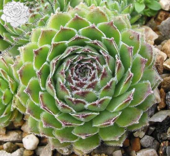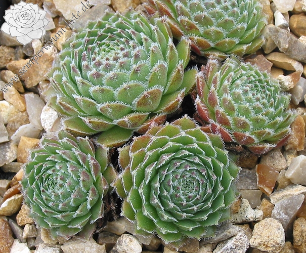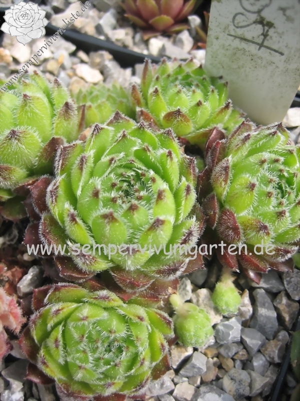 Kleine Rosetten, die dichte Polster bilden. Hellgrün, mit braunroten Blattenden. Kleine, frische Erscheinung, die mir gut gefällt.