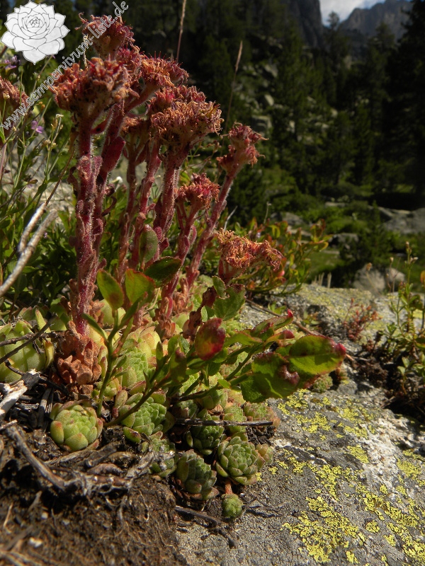 Die Rosetten von Sempervivum montanum im Gebirge Sant Maurici waren größer als die Rosetten, die ich nördlicher in den Pyrenäen beobachtet habe.