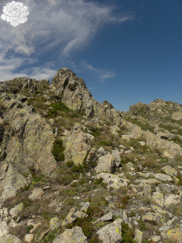 Lokalität: Oberhalb des Sees Ratera im Gebirge Sant Maurici in den spanischen Pyrenäen, dort in den Lücken unter den Steinen, in der Nähe der großen Steine und in den Felsspalten.