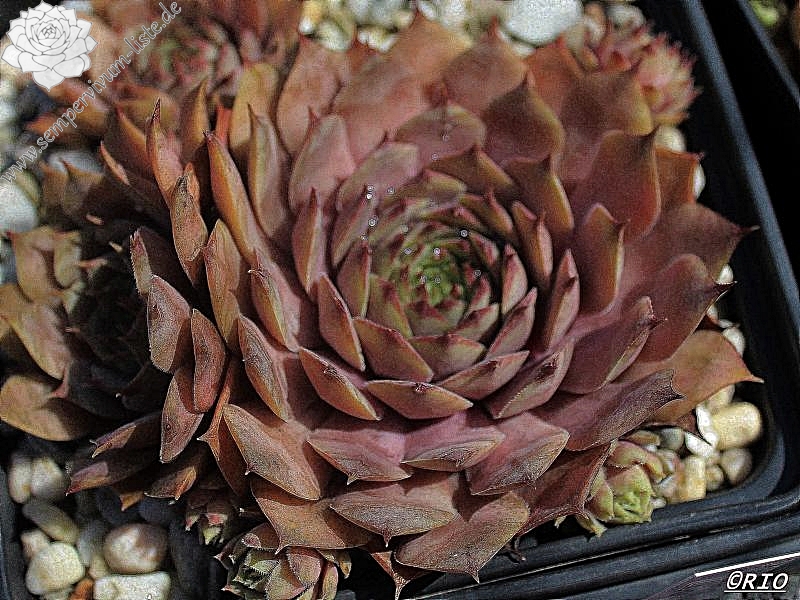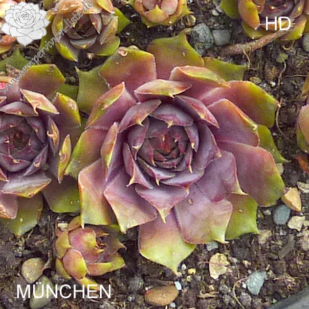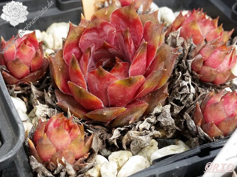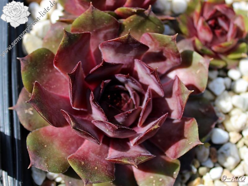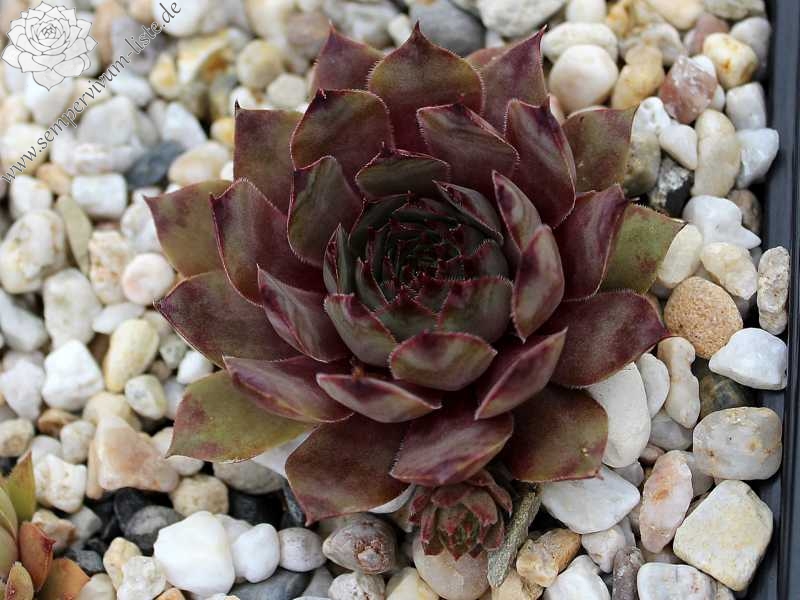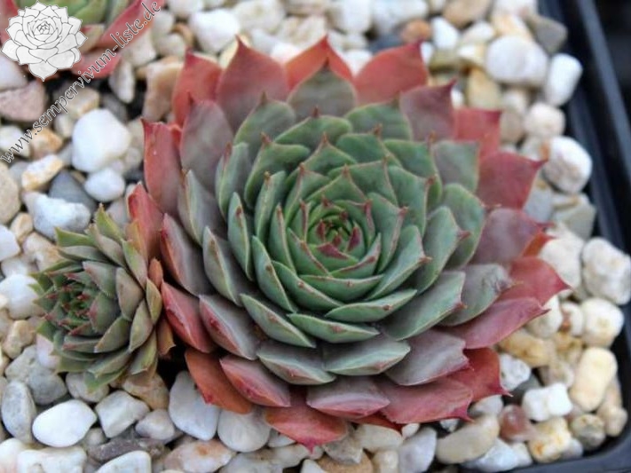 Ganz große offene Rosetten zeigt diese Sorte. Gut passen dazu die rötlichen Blattenden.