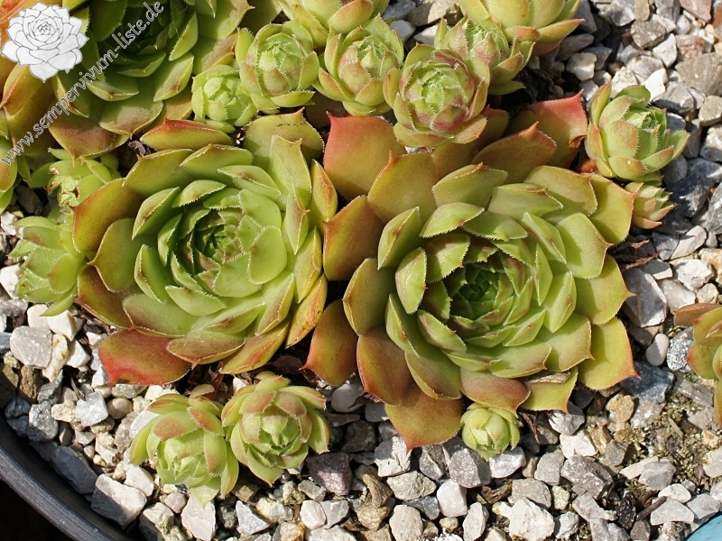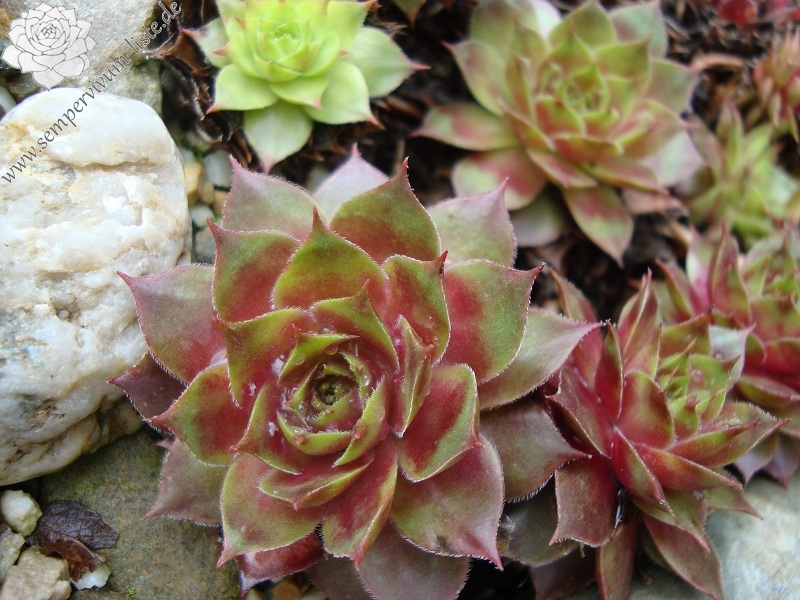mittelgroße, kugelige Rosetten, grün, außen hell rot