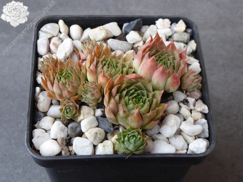 Rosetten bis 6 cm, Blätter lanzettlich, lang bespitzt, Mischfarben hellgrün - altrosa - beigebraun