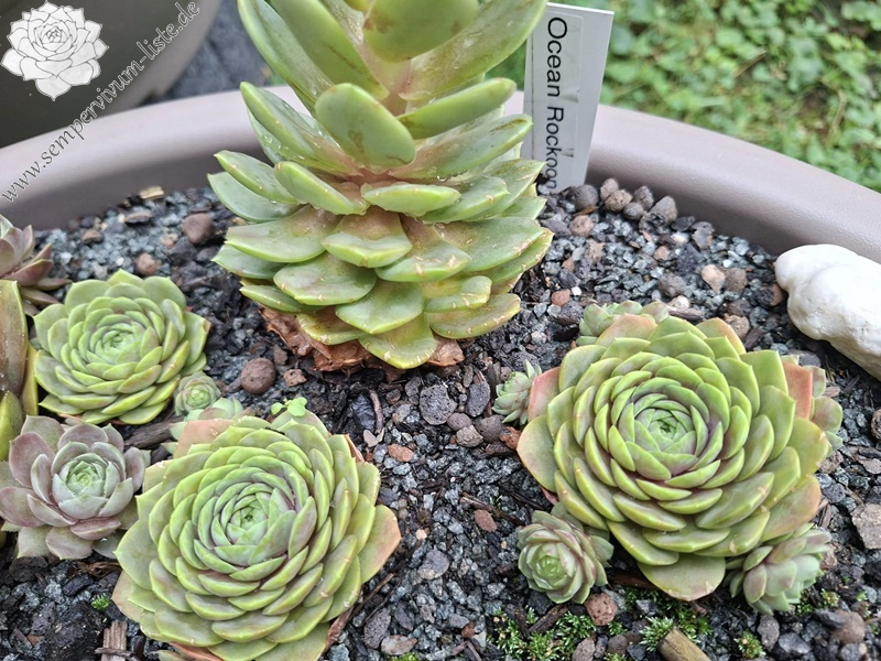 'Ocean Rockoon' bildet sehr bullige, große mintgrüne Rosetten mit sehr sukkulenten, rundlichen Blättern. In der Rosettenmitte wachsen sie manchmal verdreht, wie bei allen Rockoons. Durch ihre sukkulente Form sind sie ineinander verschlungen. Die äußeren Blätter fächern dann wunderbar auf und legen sich auch etwas flach auf den Boden, das Markenzeichen der Rockoons.