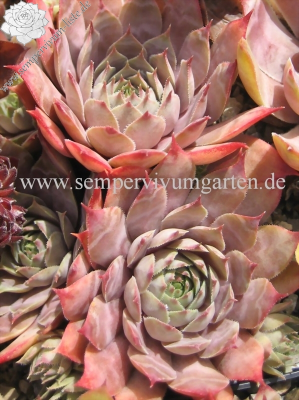 Mittelgroße Rosetten, deren besonderer Reiz die äußeren roten Blattränder sind. Ebenfalls wüchsig!