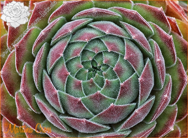 Eine beliebte Hybride aus den USA, die auch in Großbritannien gut angekommen ist. Sie erhielt dort 1974 von der RHS den Award of Garden Merit und wurde auch von der Britischen Sempervivum Gesellschaft ein Jahr später mit der "Bronze Rosette" (Bronzemedaille) ausgezeichnet. Sie formt bullige, plüschige Rosetten in weinroten Tönen, auch eine unserer ersten Lieblinge im Reich der Freilandsukkulenten.
