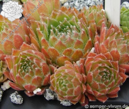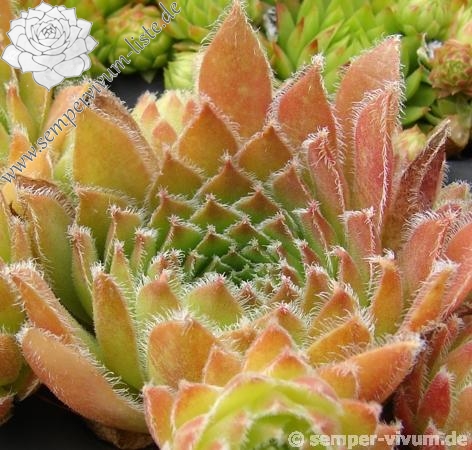Eine kleinere Kreuzung, die dichte Polster bildet und gut sprosst. Die Blattenden zeigen eine orangerote Färbung. Die Blattränder sind leicht weiß behaart.
