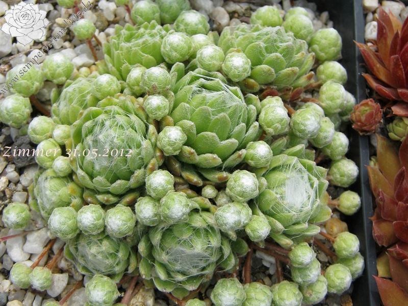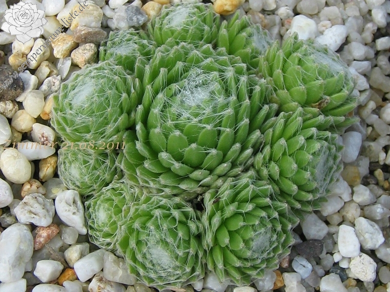 Rosetten 2-3 cm, grün, kugelig, weiße Spinnweben