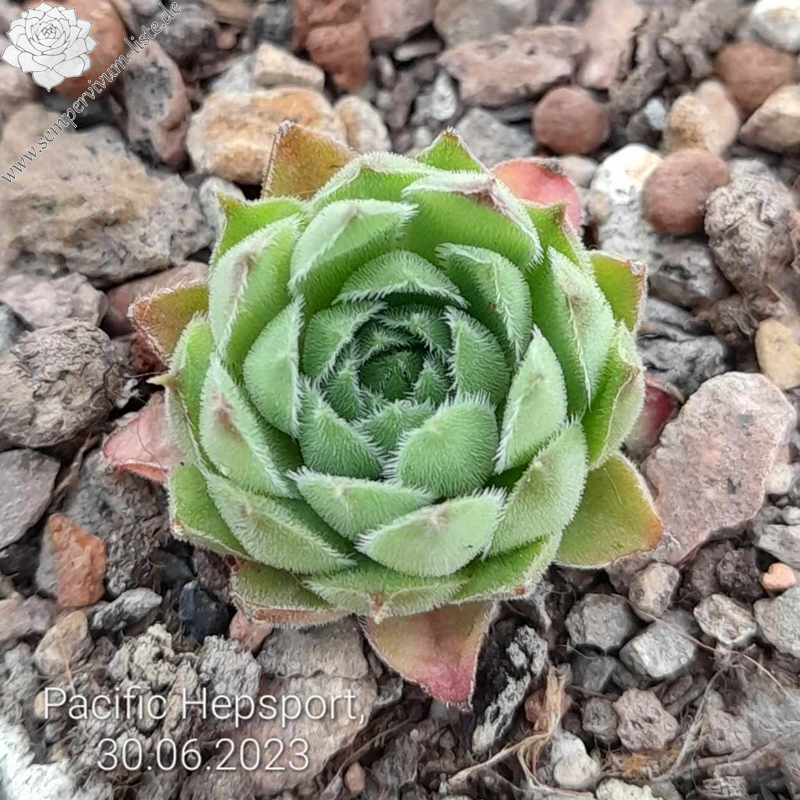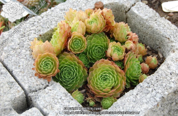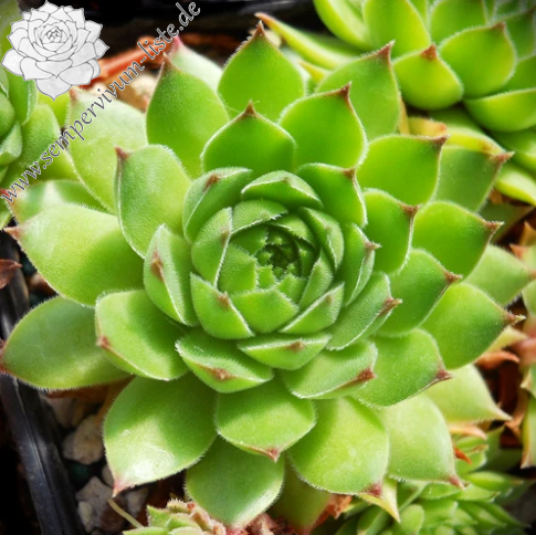 Slightly velvet bright green rosettes with highlighted tips. Medium. Gary Gossett. (Summer photo)
