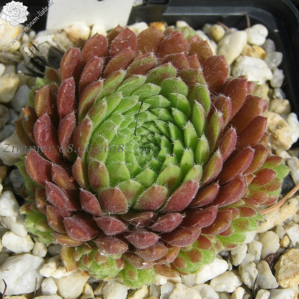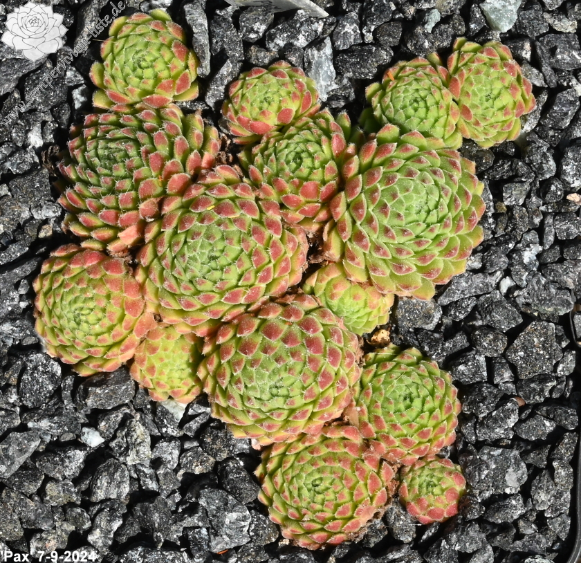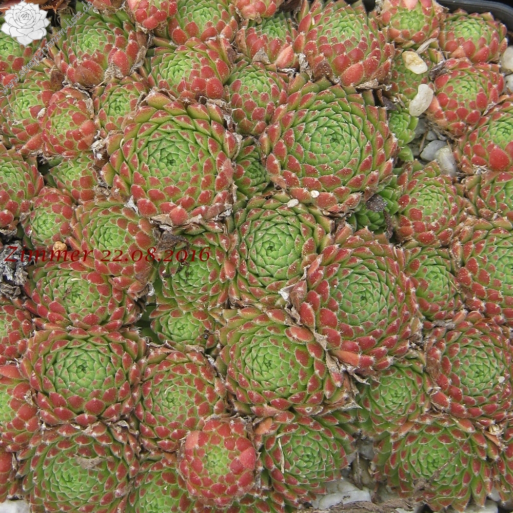 Ros. 3 cm, sehr dicht, hellgrün mit Brauntönen, Bl. rosa
