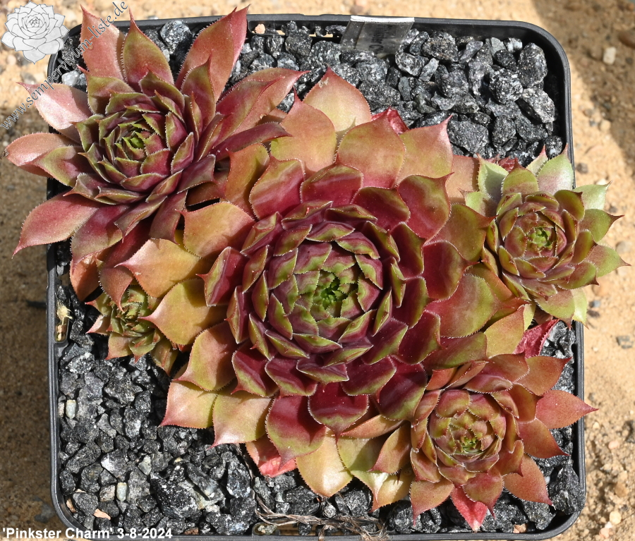 Eine noch unbekannte Kreuzung, die kräftige Rosetten bildet. Sie zeigte sich als besonders farbenfroh! Sie sprosst willig.