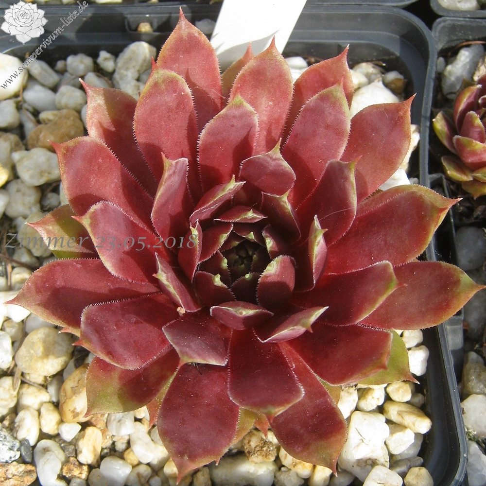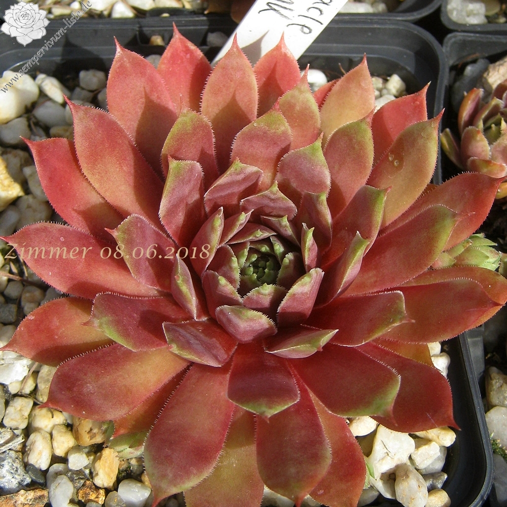 Sempervivum 'Pinnacle Pink' ist eine wüchsige Pflanze. Die größeren, edlen Rosetten zeigen im Zentrum rosa Farben.