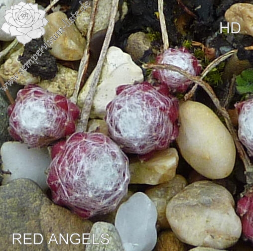 Ein kleinerer Spinnwebhauswurz, der im Zentrum stark besponnen ist. Die Rosettenränder besitzen auffallende Farben, die sich auch im Sommer gut halten.