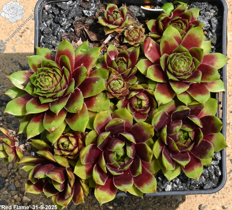 Diese Hauswurz haben wir von einer französischen Kollegin erhalten. Sie hat große Ähnlichkeit mit der echten 'Chistmas Time'. Sehr große Rosetten von etwa 12 Zentimeter und mehr. Während des Frühjahrs und auch im Frühsommer ist das Grün der Blätter besonders attraktiv und leuchtet auffallend aus den Töpfen.