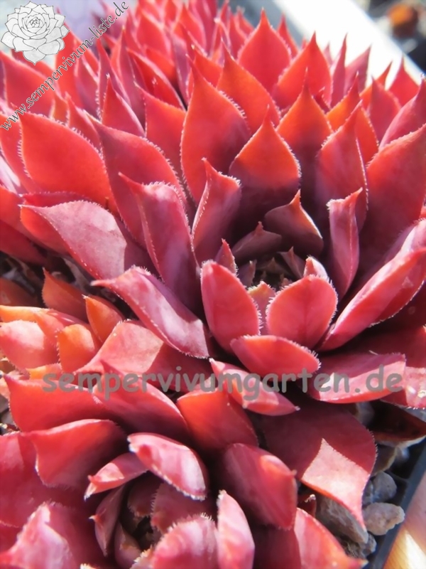 Sempervivum 'Red Skrocki' ist eine toll gefärbte Pflanze, die mir im Sommer sehr gefällt! Die Rosettenblätter stehen ganz eng zusammen und machen einen festen Eindruck.