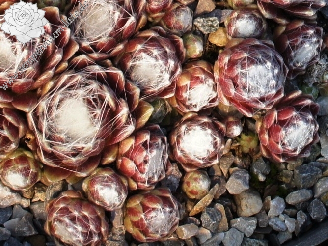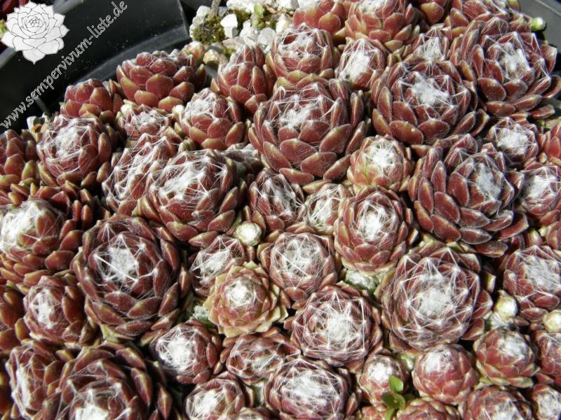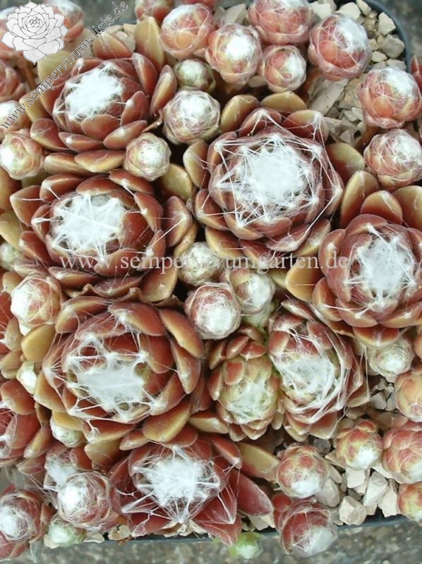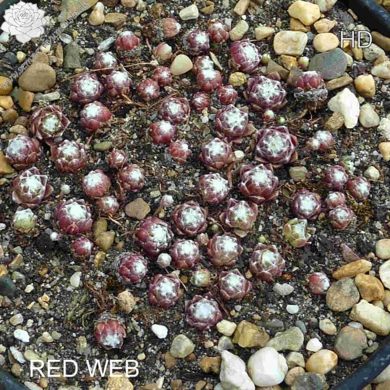 Hier haben wir einen der schönsten roten Spinnwebhauswurz. Sehr wüchsig und gute Polster bildend. Die Bespinnung nimmt im Sommer noch zu. Super!