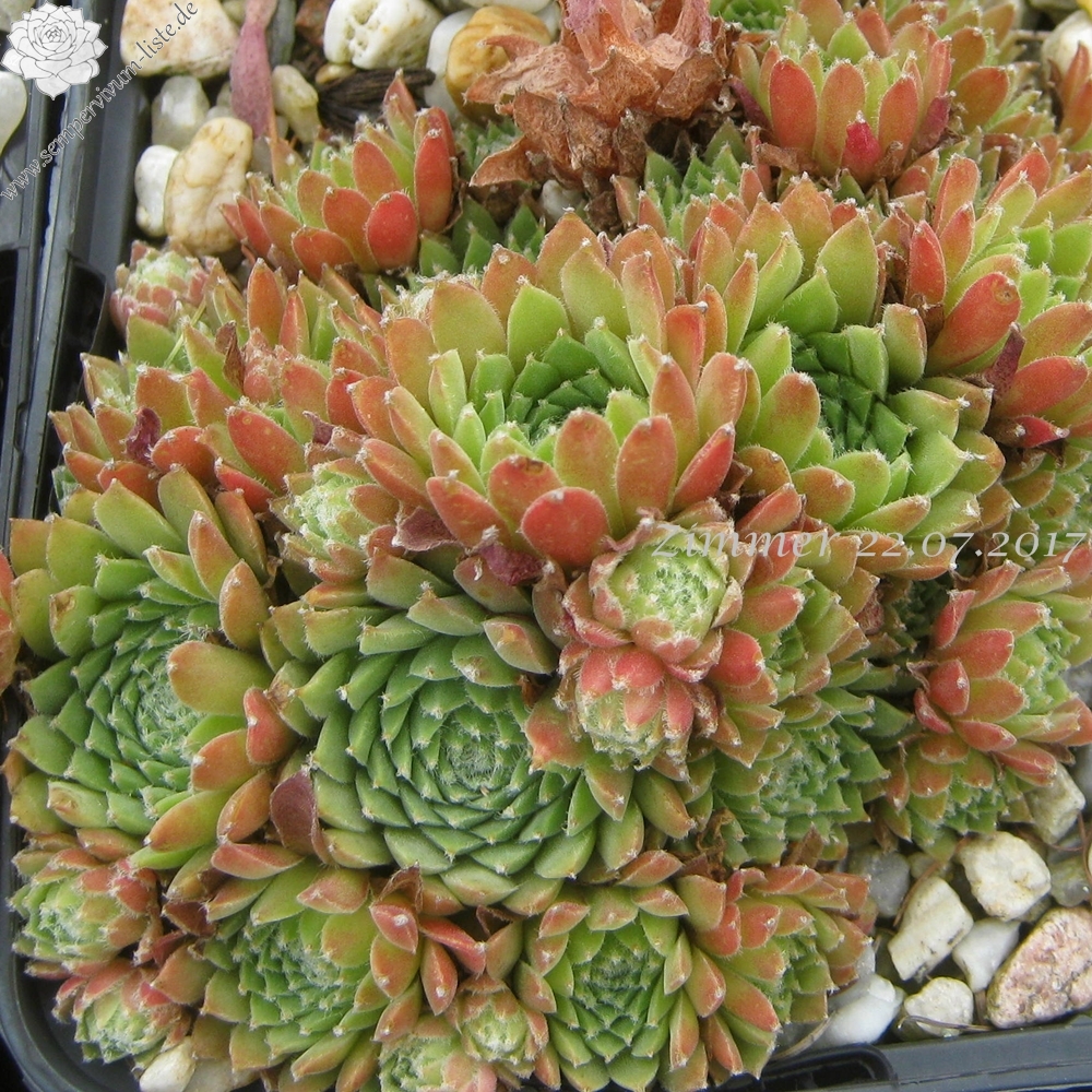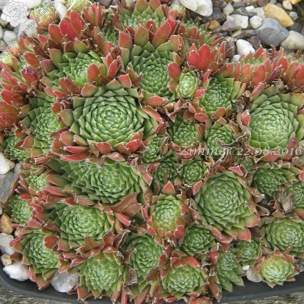 Ros. grün mit weiß, roter Rand, Blüten tiefrot