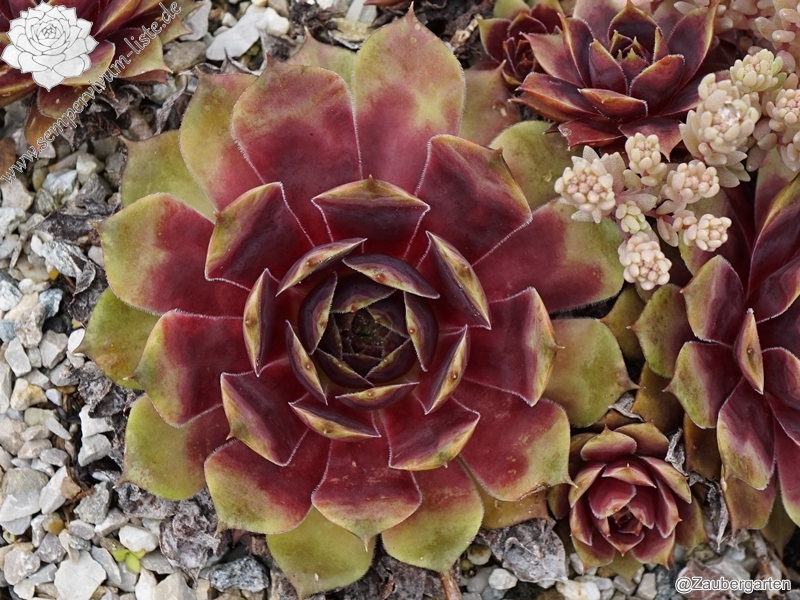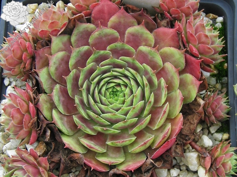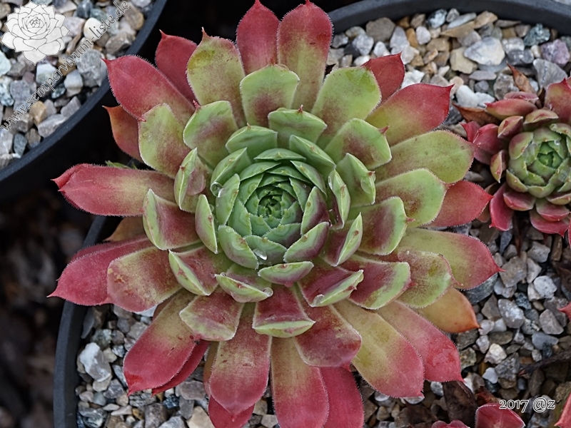 Ros. 3-8 cm, breit, blaugrün, rosa Spitzen