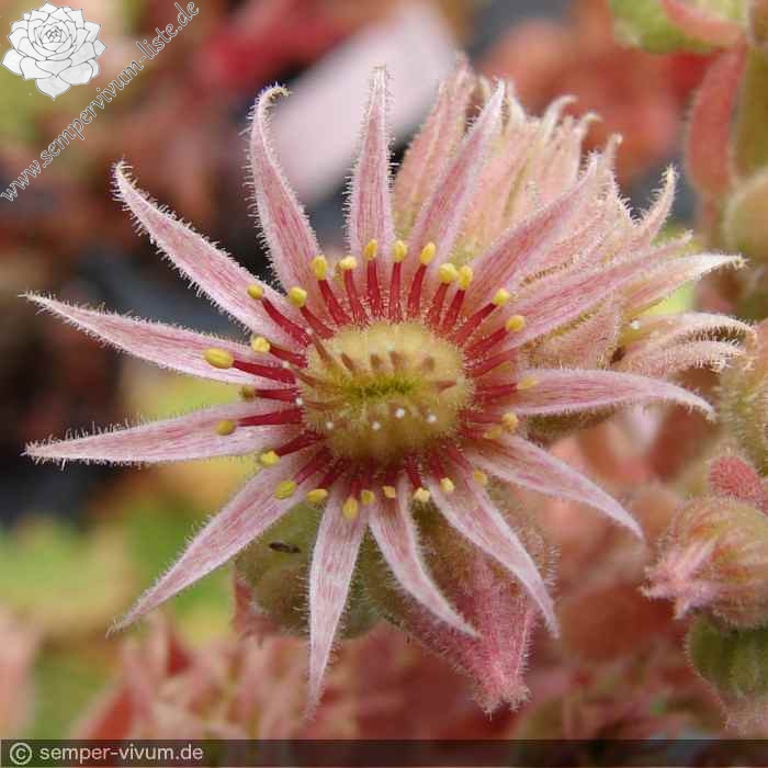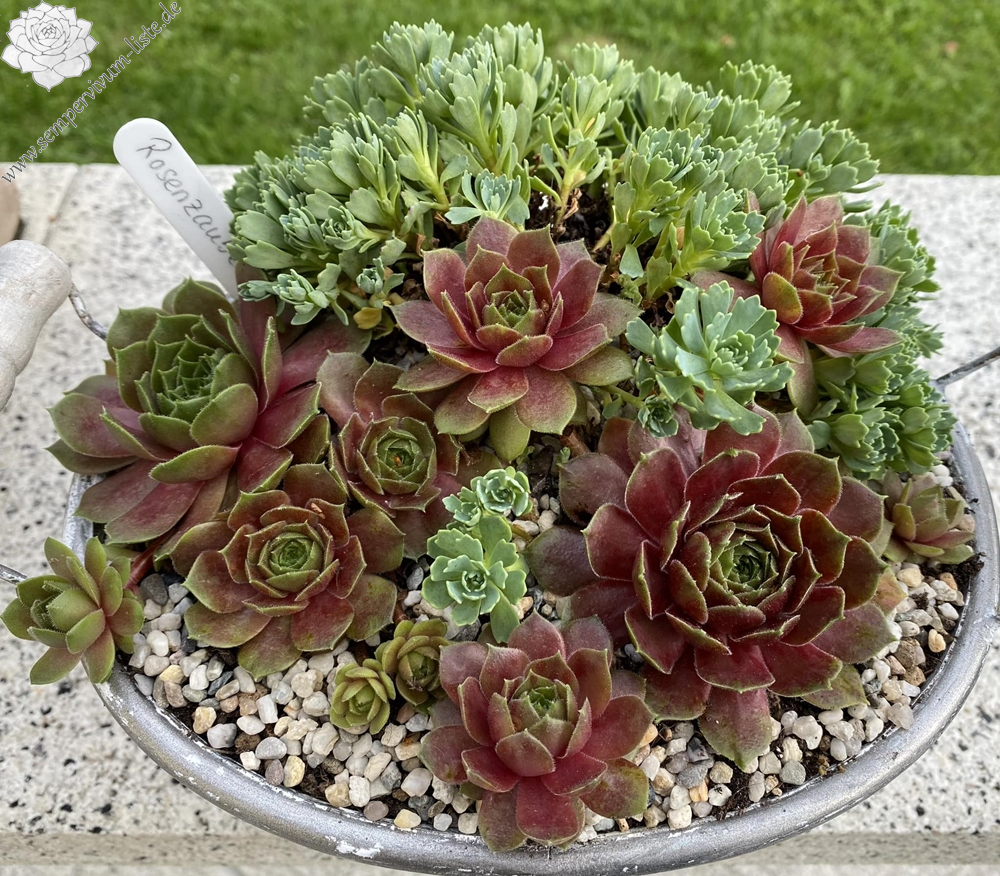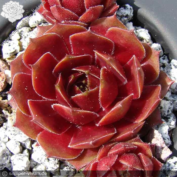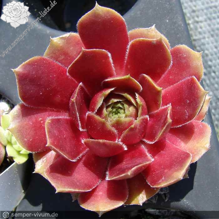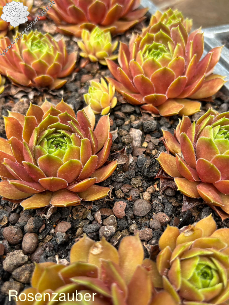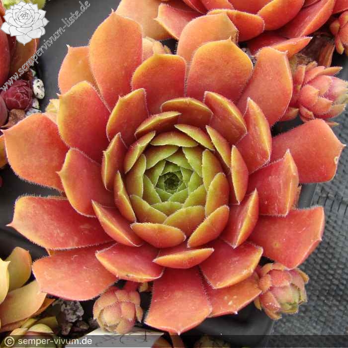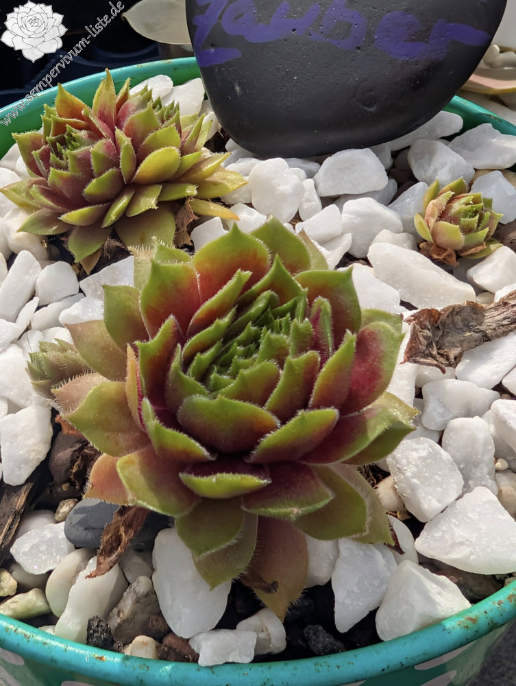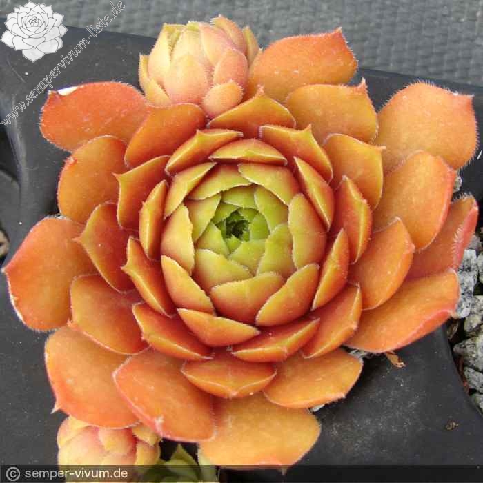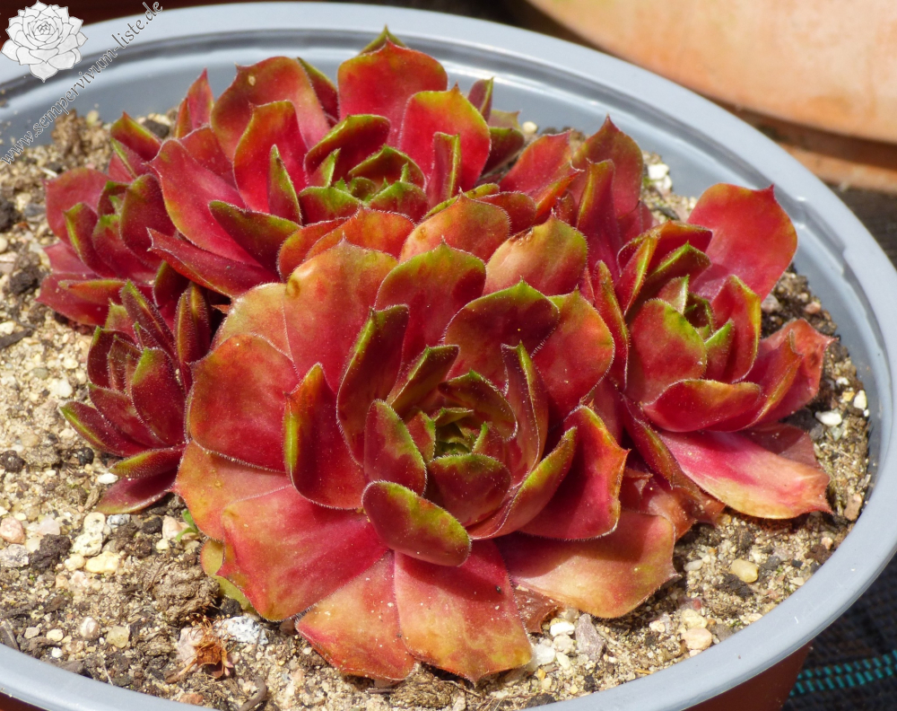 Dieser Hauswurz erinnert zu mancher Zeit an die attraktive S. grandiflorum Züchtung 'Aäron' die kaum Nachwuchs formt. Unsere Neueinführung ist jedoch ein Sämling von unserer beliebten Auslese 'Tintenblut', was ein Anblick kaum vermuten lässt. Auffallend breite Blätter mit leicht samtener Textur formen größere Rosetten in unterschiedlicher Färbung von Blutrot über lachsfarbenem Orange zu goldenem Ocker, wobei vor allem die Form zum Namen passt.