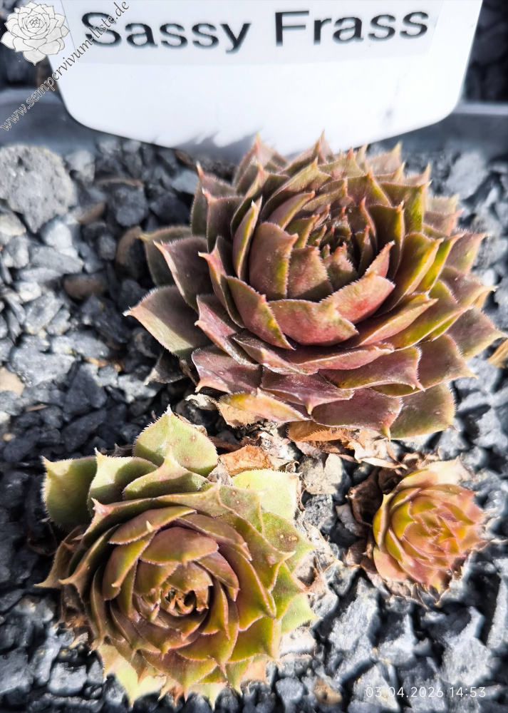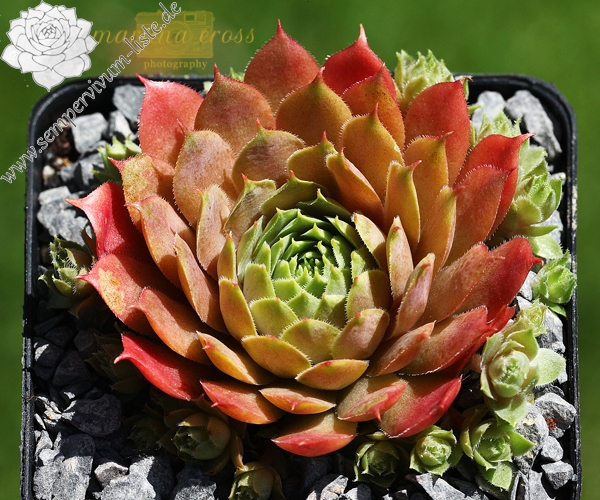 Ein 'Atroviolaceum' Sämling aus dem Jahre 1976 mit sehr buntem Farbenspiel! Von rosa- und pfirsichfarbenen Rosetten während des Frühjahrs zu einer auffallend hellgelben Färbung zum Ende des Sommers. Ein must have!