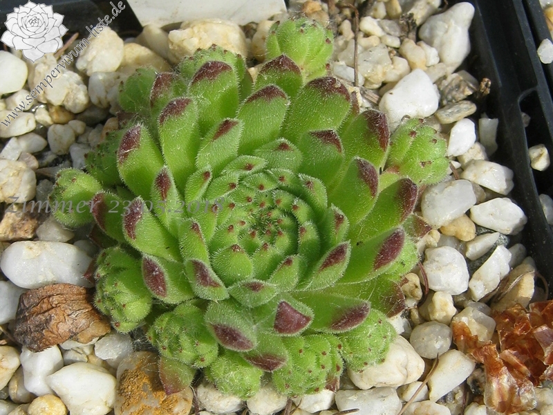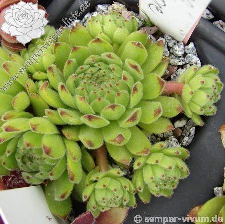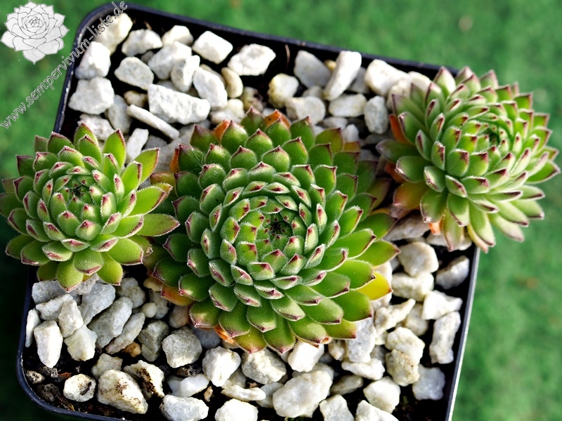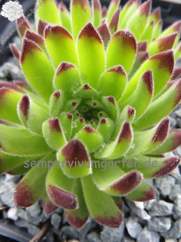 Sempervivum 'Sea Anemone' ist ein kleiner, grüner Hauswurz. Die Rosetten sprossen willig und bilden ganz dichte Polster. Die rötlichen Blattspitzen heben sich toll von der grünen Grundfärbung ab.
