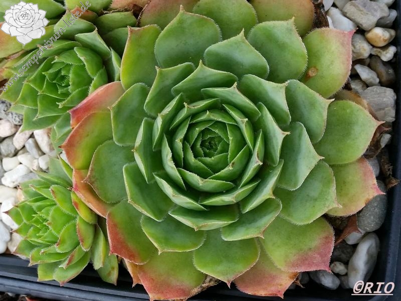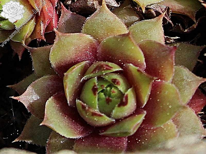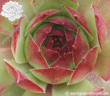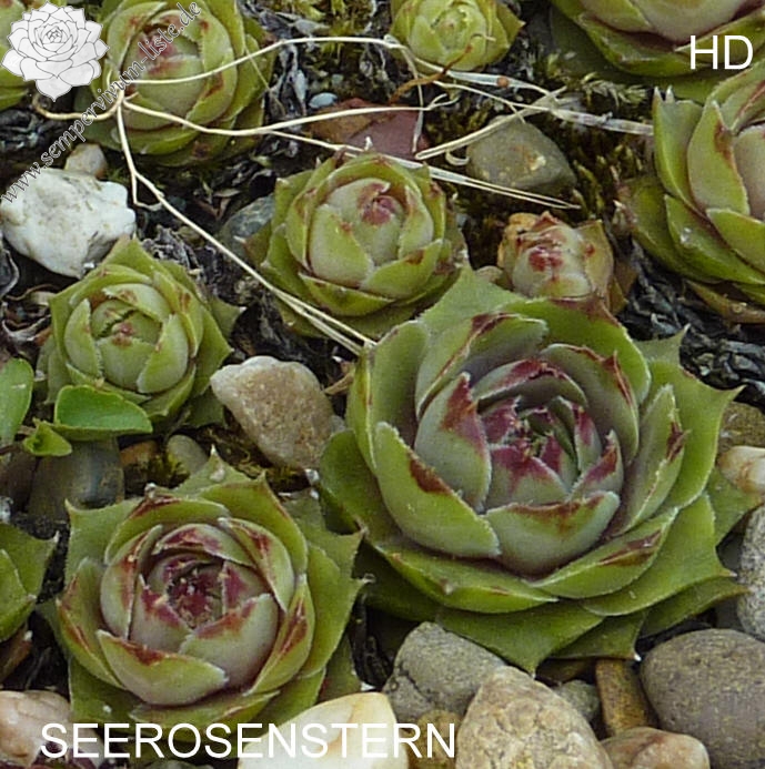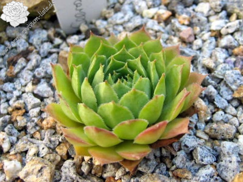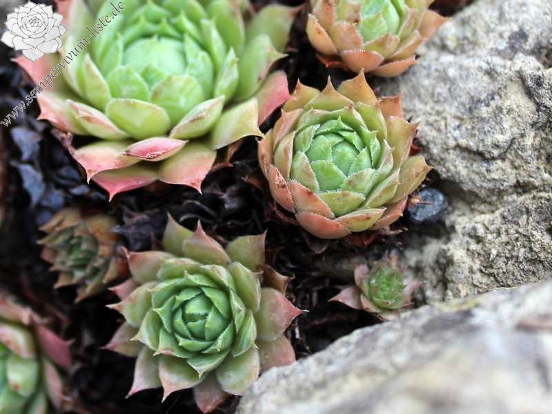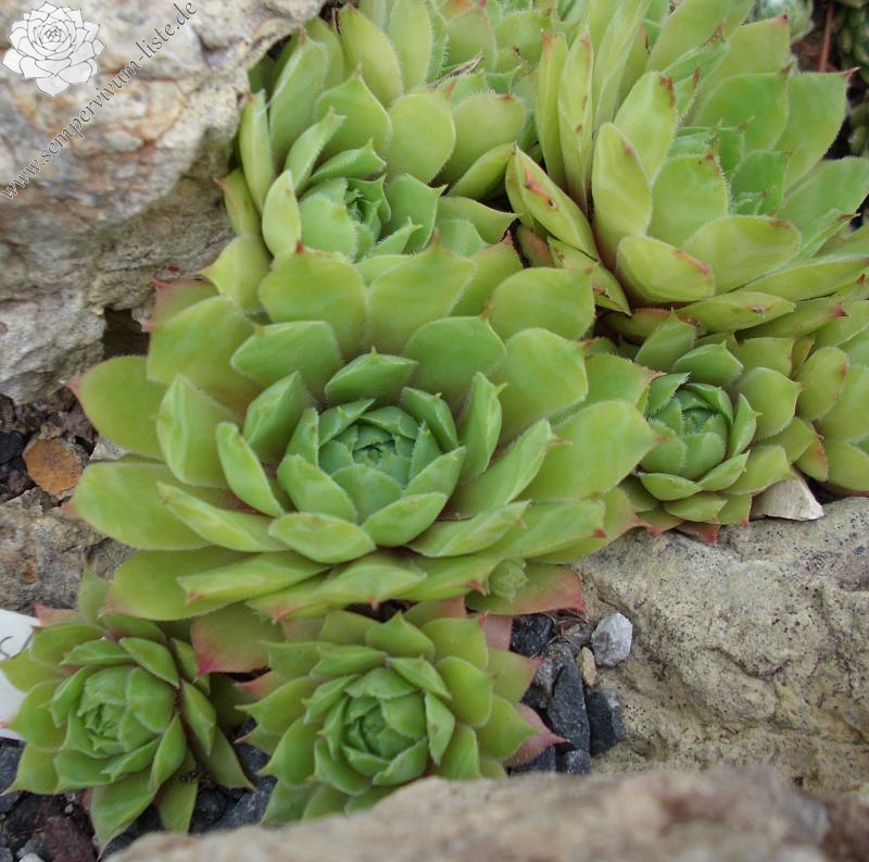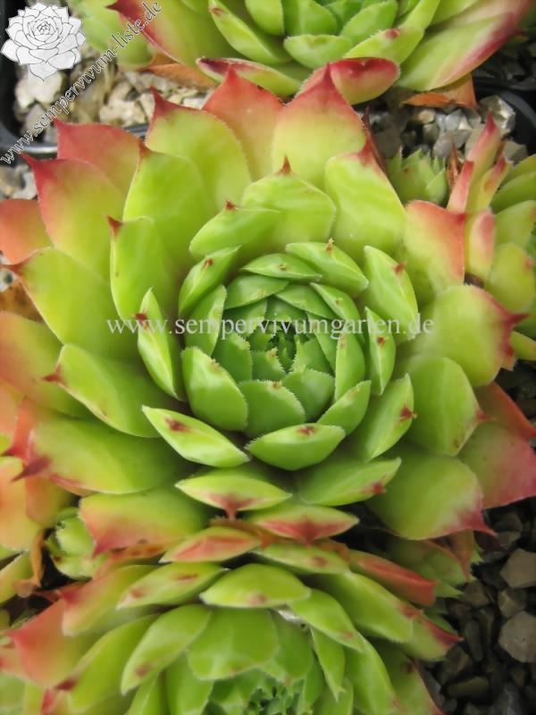 Sie erhalten bei uns die beschriebene Form mit großen, apfelgrünen Rosetten. Die Blattspitzen zeigen besonders in den Frühlingsmonaten einen leuchtend karminroten Farbton. Vielleicht auch als 'Schneestern' in Kultur, das sich hier kein Unterschied von Form und Färbung zeigt.