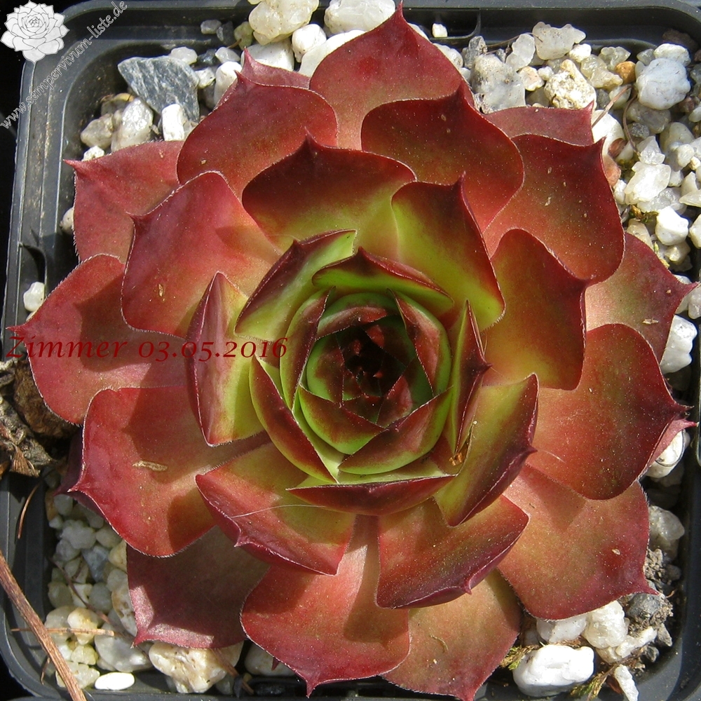 Dr. Fritz Köhlein schreibt in seinem Standardwerk 'Freilandsukkulenten': „Große, besonders schön geformte, seerosenartige, grüne Rosetten mit auffallend rotbraunen Spitzen. Der Farbkontrast ist besonders im März auffällig (S. tectorum-Form oder –Hybride).“