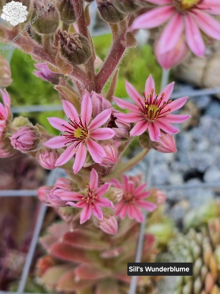 Ein kleiner Riese unter den Spinnwebhauswurz Hybriden mit ungewöhnlich geformten Rosetten. In manchen Jahren bilden sich die Töchter direkt am Herz der Mutter. Es scheint dann, als würden sie sich teilen. Diese charakteristische Eigenschaft kennen wir vor allem von der Art S. heuffelii, die von manchen Botanikern auch heute noch zur Gattung Jovibarba gestellt werden.