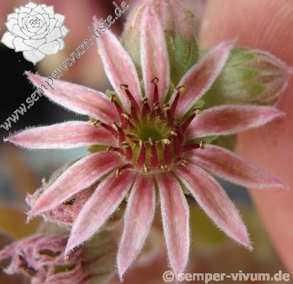 Eine bezauberne S. marmoreum 'Brunneifolium' - Hybride mit mittelgroßen, samtigen Rosetten mit relativ dicken Blättern in bräunlich-kupferfarbenen Farbnuancen. Zur kalten Jahreszeit mit auffallender rosa-bräunlichen Tönung; Langsam wachsend.