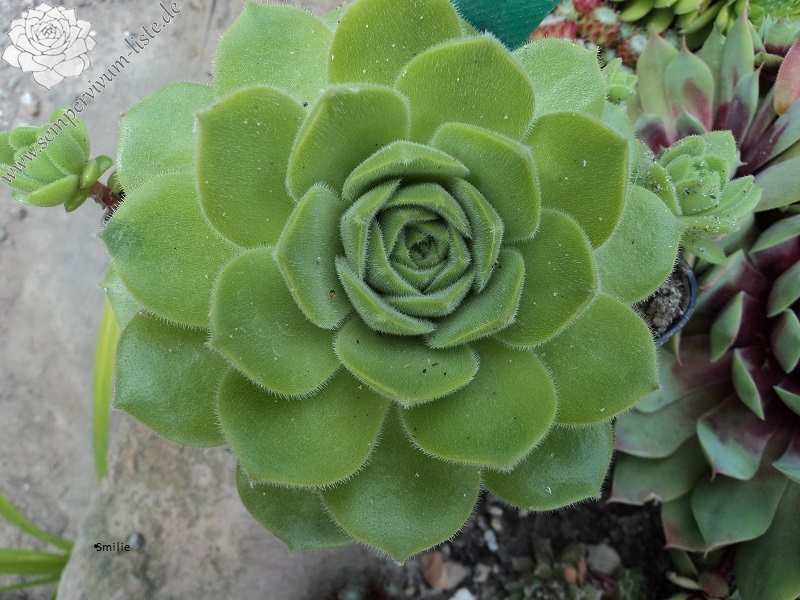 Ein Findling aus Sewan - Nord Armenien. Er wurde dort laut dem Sammler in der Nähe der Brücke zur Insel Sewan gefunden. Wenige, extrem dickfleischige Blätter formen bullige Rosetten mit samtiger Oberfläche. 'Smilie' bildet wenig Nachwuchs, dafür hat er sich bislang als absolut blühfaul erwiesen, weshalb wir diese außergewöhnliche Lokalform bis heute keiner Art zuordnen konnten. Vermuten lässt der Fundort auf die Zugehörigkeit oder Verwandtschaft zu S. transcaucasicum. Bitte schützen Sie diese Hauswurz unbedingt vor übermäßiger Nässe. Eine Rarität, die wir eher dem Liebhaber empfehlen!