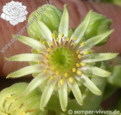Erwin Geiger: Gyadikvank ist ein ehemaliger Ort in der Provinz Vayots Dzor von Armenien der mittlerweile zu Vardahovit umbenannt wurde. Sie erhalten einen sehr wüchsigen Klon, der kompakte Polster bildet. Die Blätter sind in pastel apfelgrün, nahezu filzig überzogen. Das kleine abrupt aufgesetzte Spitzchen auf jedem Blatt macht die Standortform besonders reizvoll. In sehr nährstoffarmen Böden verfärbt sich der äußere Bereich der Rosetten in hübsches Rosa.