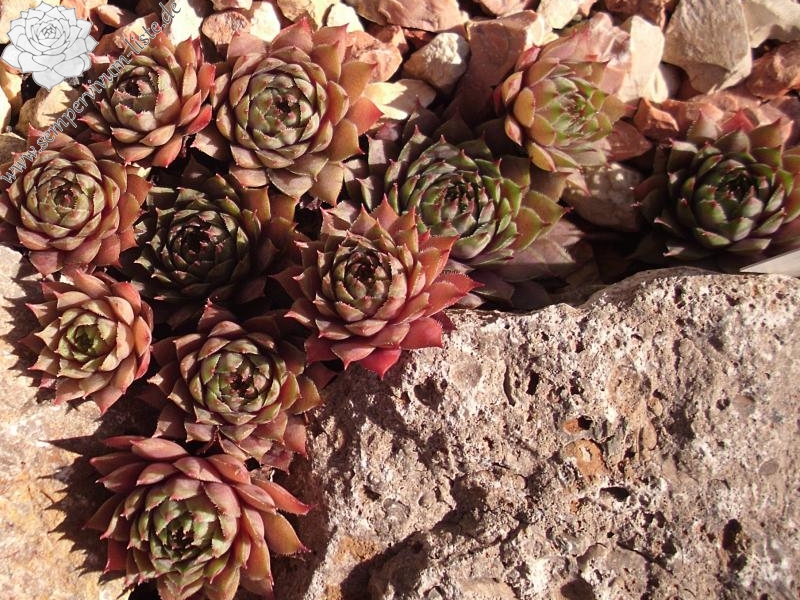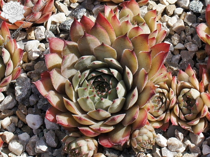 Eine sehr helle Färbung zeigt diese mittelgroße Sorte. Die roten Blattspitzen runden das Bild ab. Leider nur wenige Rosetten.