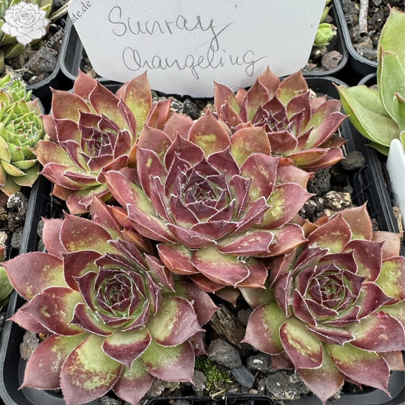 Sempervivum 'Sunray Changeling' ist eine größere Hauswurz mit kräftiger Färbung. Die Pflanzen sprossen willig und bilden dichte Polster. Schöne Züchtung!