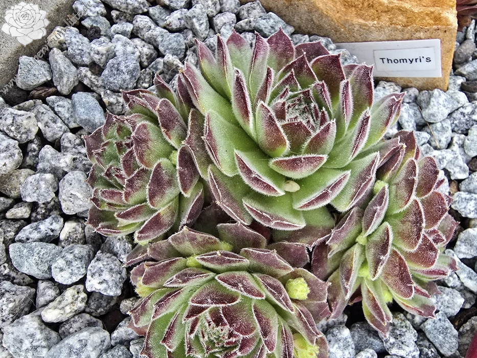Sempervivum 'Thomyris' ist eine schöne, kühl grün gefärbte Pflanze. Die Rosetten sprossen gut und erreichen einen Durchmesser von 8cm. Die Blätter zeigen eine leichte Behaarung und wirken sehr stabil.