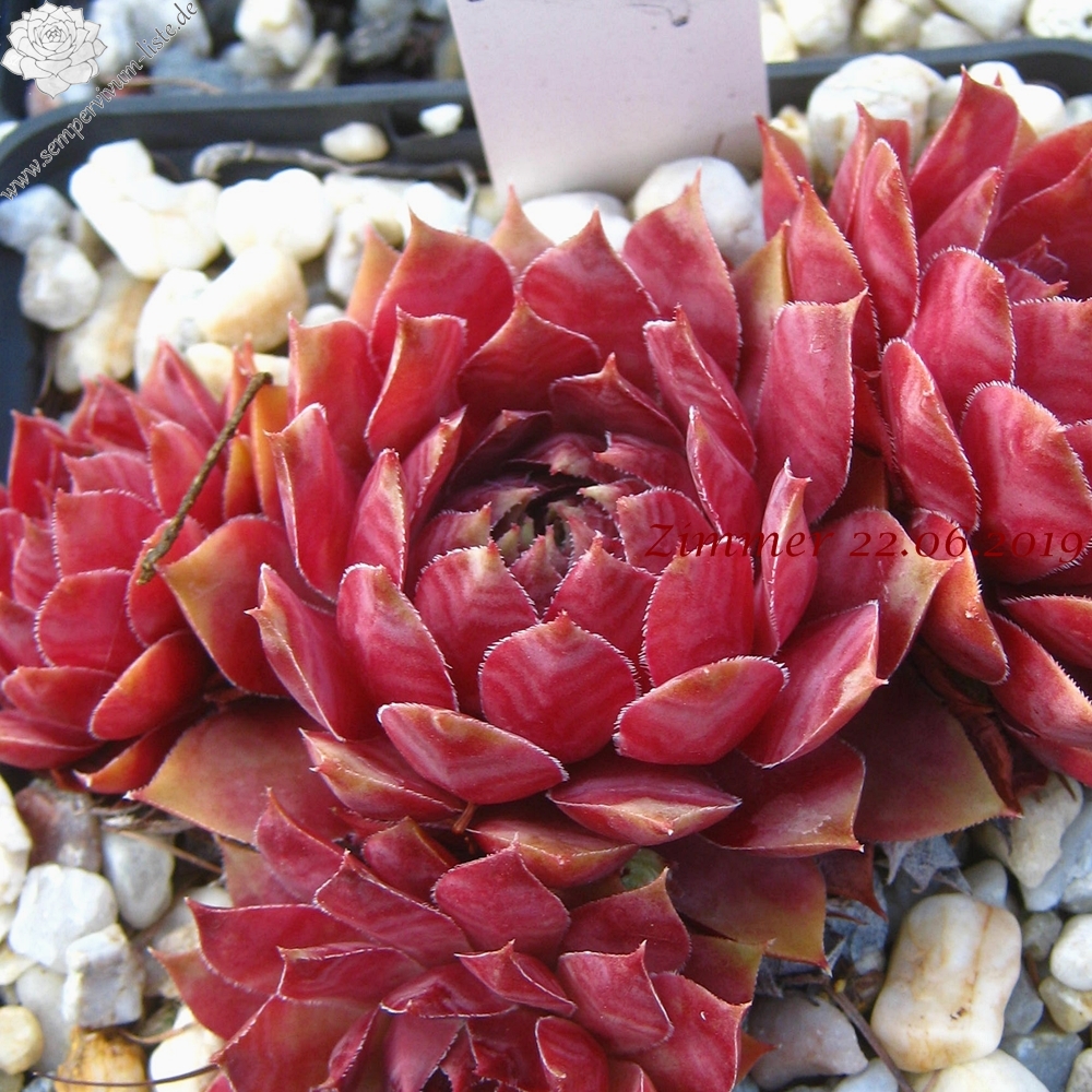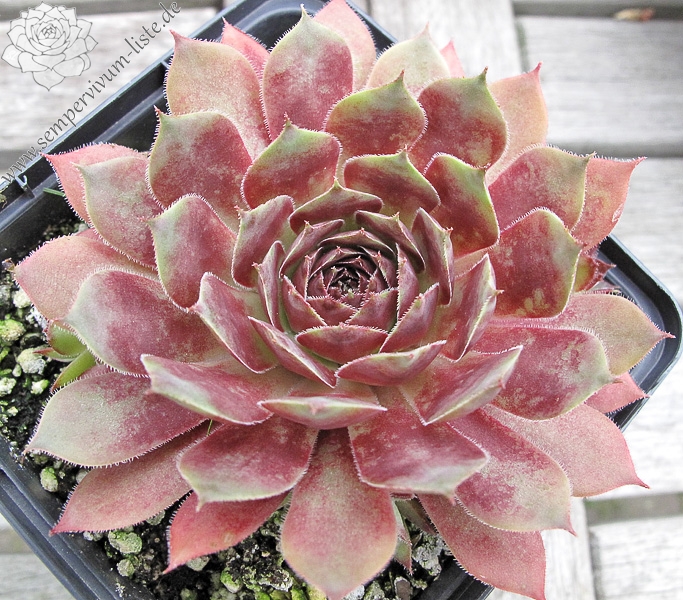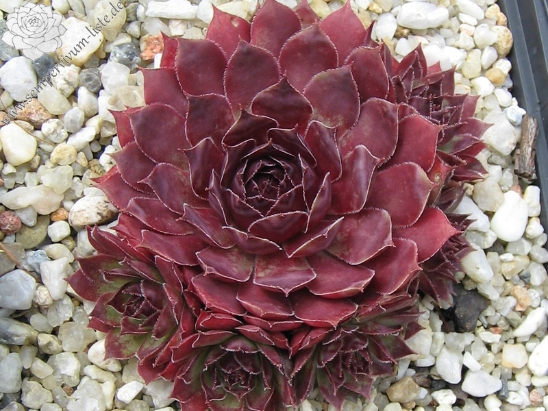 Eine Pflanze, von der man leider immer zu wenig Rosetten besitzt. Diese Besonderheit zeigt im Sommer schöne kräftige Farben. Das Rosettenzentrum zeigt sich oft knospenförmig und die Blätter sind am Grund kräftig rot gefärbt. Die hellen Blattspitzen runden das Bild hervorragend ab. Die mittelgroßen Rosetten bilden dichte Polster.
