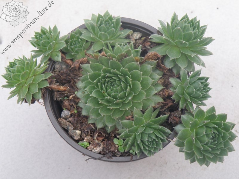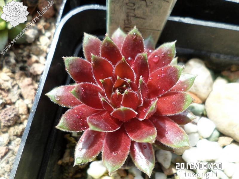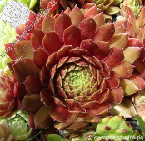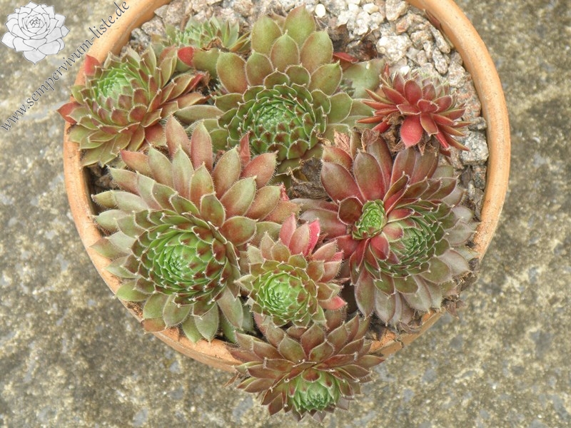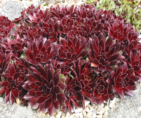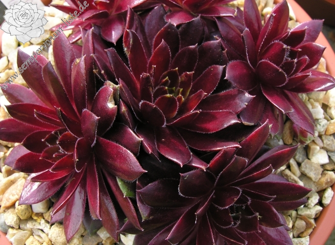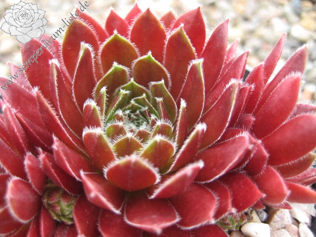 Diese belgische Hybride aus S. tectorum 'Gloriosum' x S. x barbulatum 'King George' hat ihren eigenen Charme. Schon die Form ist anders als bei den anderen hunderten von Züchtungen. Im Frühsommer leuchtend dunkelrote Rosetten mit stark bewimperten Blatträndern. Ein neuer Favorit!