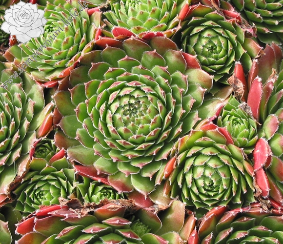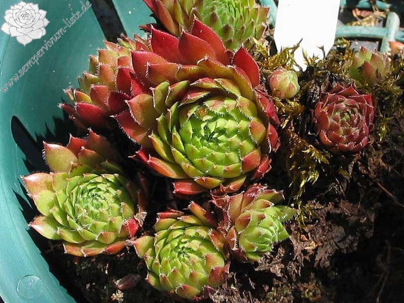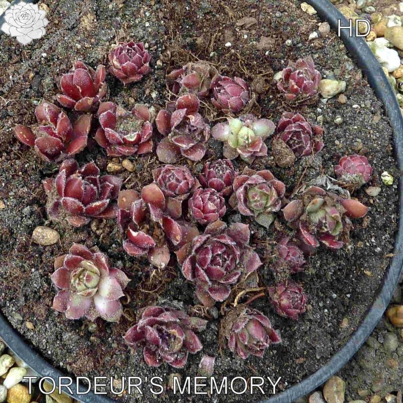 A very good red-leaved houseleek, 'Tordeur's Memory' shows some dark red all season long, not only in the spring like some cultivars. The rosettes are nicely shaped and the leaves have a nice texture.