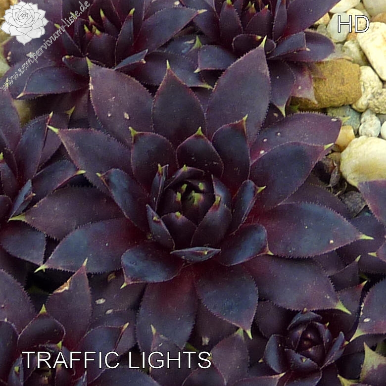 Sempervivum 'Traffic Lights' bildet schöne, große Rosetten. Die Rosetten erreichen einen Durchmesser von über 11cm und sprossen willig. Besonders schon sind die ganz hellgrünen Blattspitzen. Eine tolle Pflanze, die wirklich ein auffallendes Leuchten besitzt.